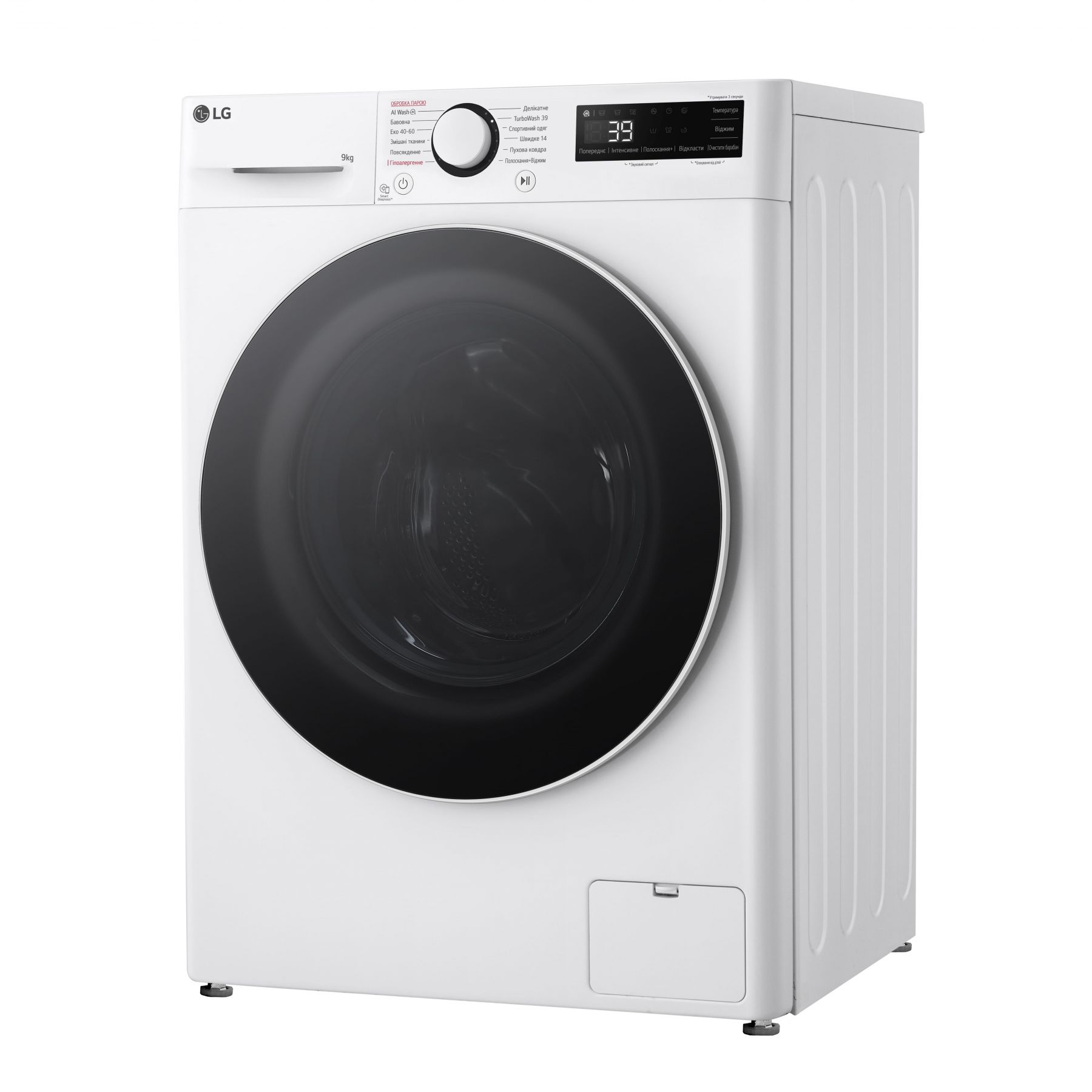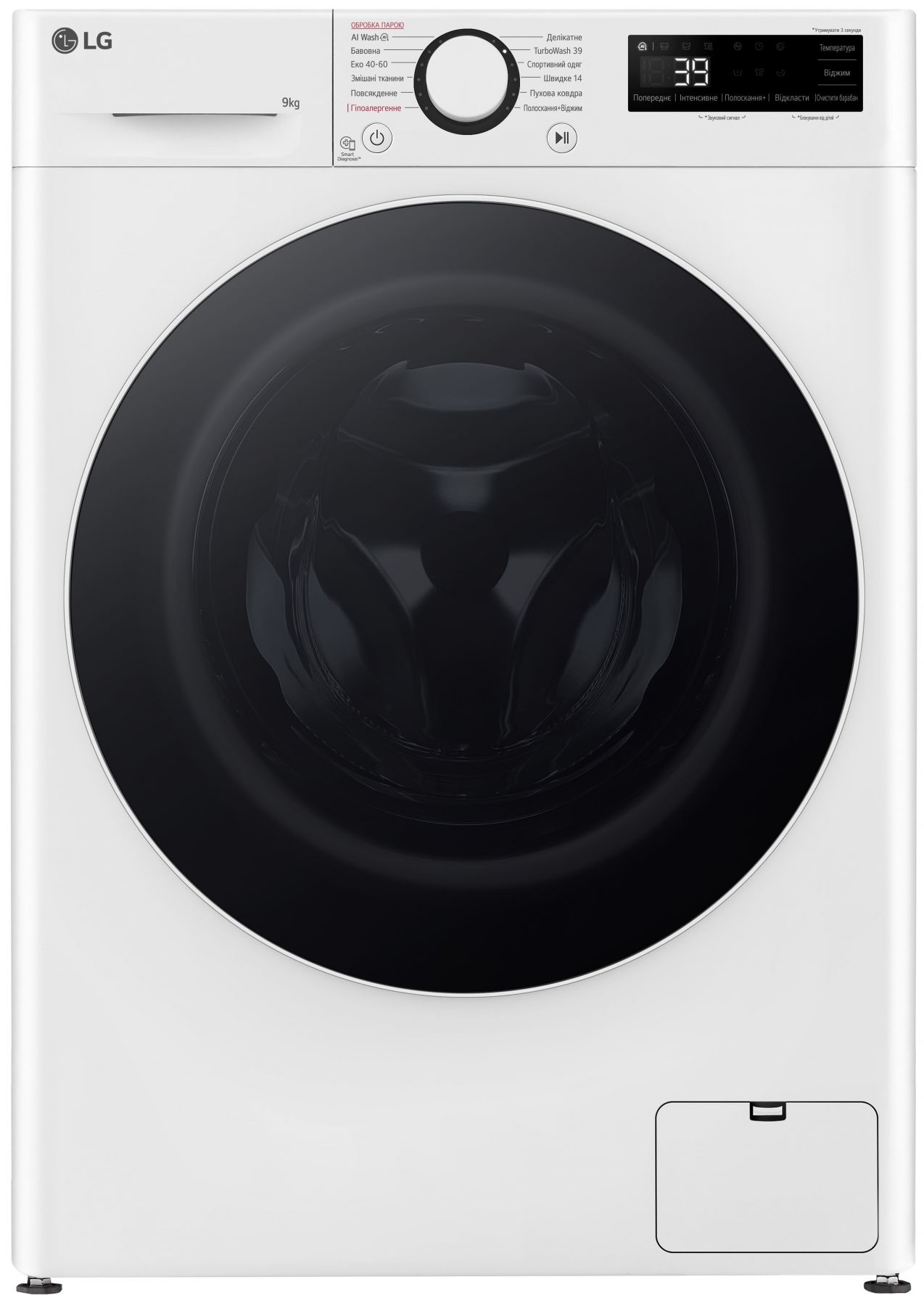 Програми:Бавовна, Спортивний одяг, Делікатна, Полоскання + Віджим, TurboWash 39, Еко 40-60, Змішані тканини, Делікатне прання, пухова ковдра, Гіпоалергенне прання, Повсякденне прання, Прання з ШІ (AI Wash), Швидке 14