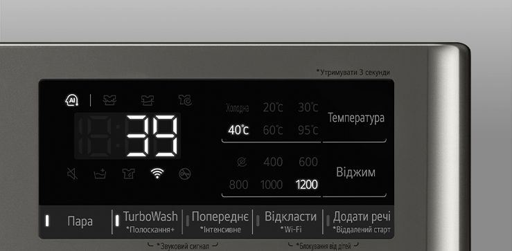 Програми:Бавовна, Спортивний одяг, Делікатна, Очищення барабана, Моя програма, TurboWash 39, Еко 40-60, Змішані тканини, пухова ковдра, Вовна / Ручне прання, Гіпоалергенне прання, Повсякденне прання, Прання з ШІ (AI Wash), Швидке 14