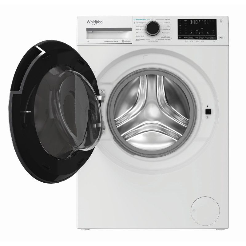 Пральна машина Whirlpool фронтальна, 7кг, 1200, A, 49.6см, дисплей, пара, інвертор, люк чорний, білий