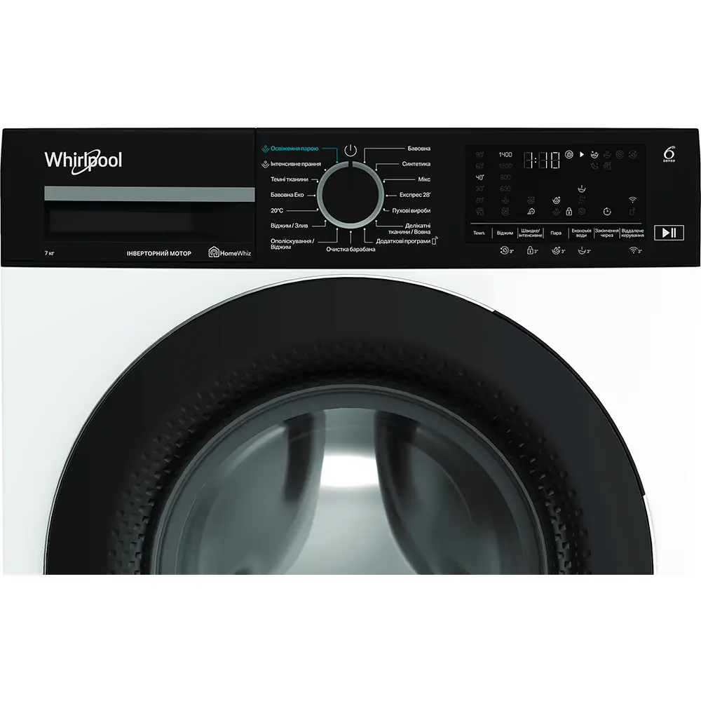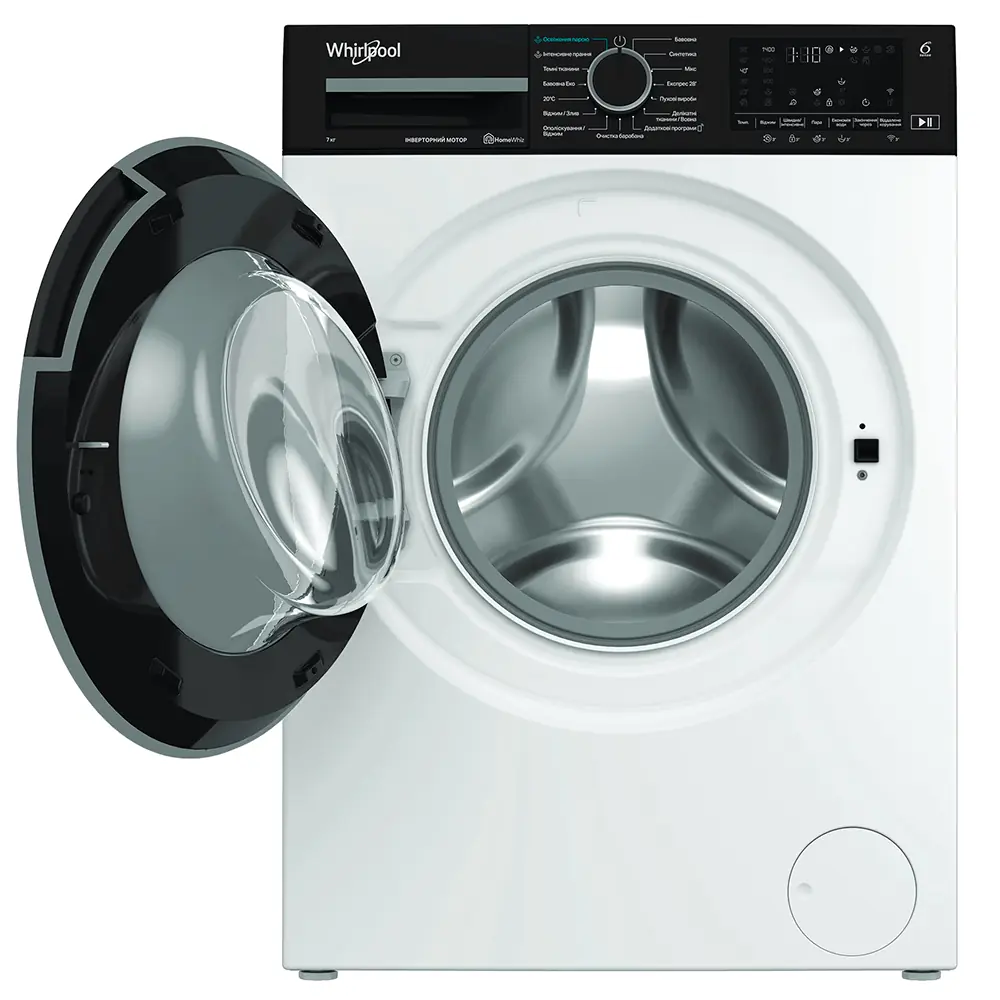 Пральна машина Whirlpool фронтальна, 7кг, 1400, A, 49.6см, дисплей, пара, інвертор, люк чорний, білий