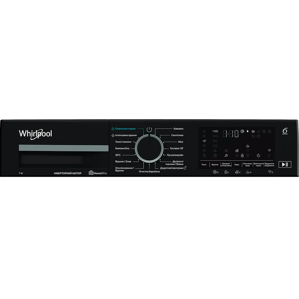 Пральна машина Whirlpool WAM 764WKB UA — фронтальна модель із завантаженням до 7 кг і швидкістю віджиму до 1400 об./хв. Оснащена інверторним двигуном та електронним керуванням із цифровим дисплеєм. Технологія 6th Sense автоматично коригує параметри циклу залежно від завантаження. Функція FreshCare допомагає зберігати свіжість білизни після завершення прання. Передбачено 15 програм, включно з режимами для делікатних тканин і пухових виробів.