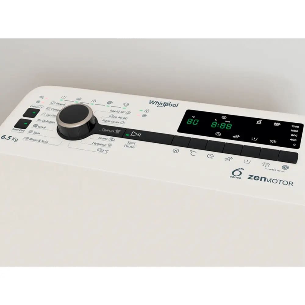 Пральна машина Whirlpool вертикальна, 6,5кг, 1200, С, 60см, дисплей, інвертор, білий