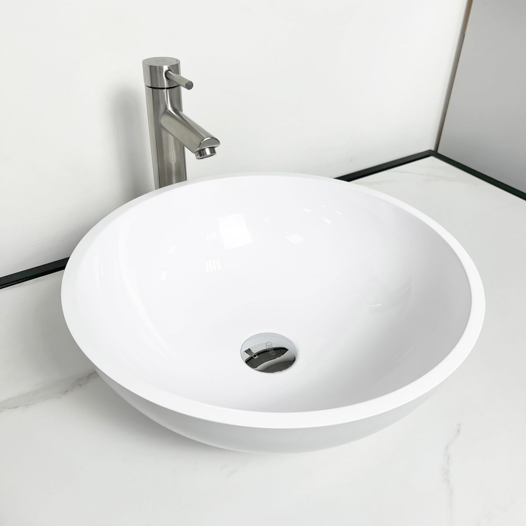 Раковина, умивальник Adamant KREIS, штучний камінь, кругла, без отвору для змішувача та переливу, 420х150мм, накладний, білий