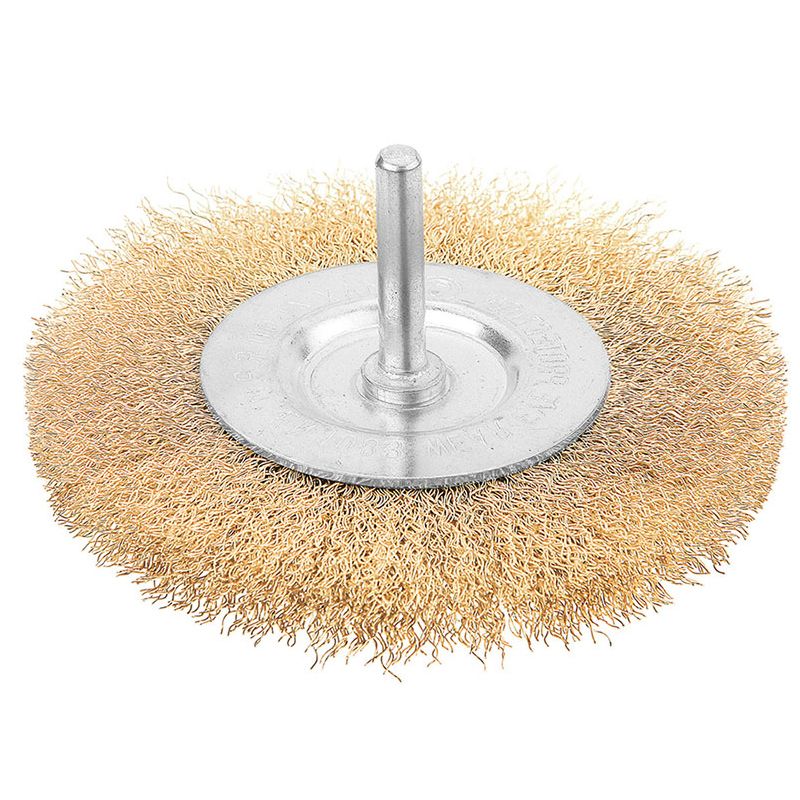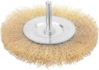 Щітка дискова Tolsen Профі 77543 діаметром 100 мм призначена для м'якого очищення поверхонь. Оснащена сталевим латунованим дротом Ø0,3 мм, що забезпечує делікатне видалення іржі, фарби та лаку. Має хвостовик 6,35 мм (1/4"), що підходить для дрилів і прямих шліфувальних машин. Максимальна швидкість – 4500 об/хв.
