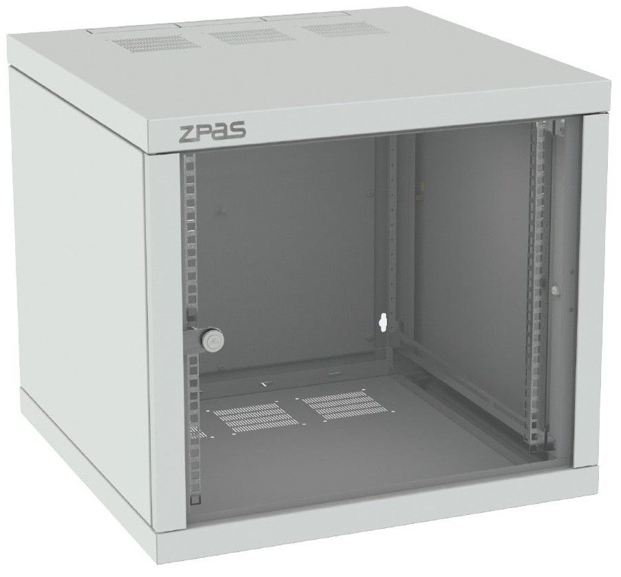 Настінна шафа ZPAS серії Z-BOX формату 19 дюймів і висотою 10U призначена для розміщення телекомунікаційного та мережевого обладнання всередині приміщень. Конструкція 600х600 мм забезпечує компактне встановлення обладнання з доступом до всіх елементів. Передні скляні двері дозволяють здійснювати візуальний контроль без відкривання шафи. Максимальне допустиме навантаження становить 100 кг.
