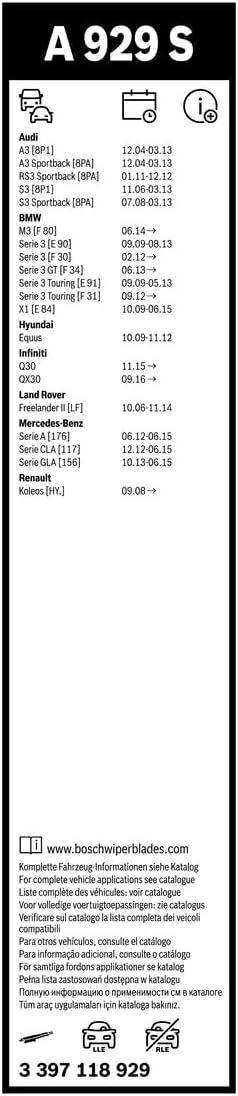 Комплект безкаркасних склоочисників Bosch Aerotwin 3397118929 складається з двох щіток довжиною 600 мм і 475 мм. Вони призначені для автомобілів з лівостороннім керуванням і забезпечують щільне, рівномірне прилягання до лобового скла. Аеродинамічний спойлер і спеціальна гумова суміш Power Protection Plus зменшують шум під час роботи та продовжують термін служби щіток. Комплект підходить для багатьох сучасних моделей, де потрібна якісна очистка скла в різних погодних умовах.
