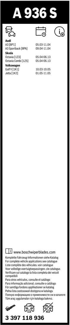 Комплект безкаркасних склоочисників Bosch Aerotwin 3397118936 складається з двох щіток довжиною 600 мм і 475 мм. Вони призначені для автомобілів з лівостороннім керуванням і забезпечують щільне, рівномірне прилягання до лобового скла. Аеродинамічний спойлер і спеціальна гумова суміш Power Protection Plus зменшують шум під час роботи та продовжують термін служби щіток. Комплект підходить для багатьох сучасних моделей, де потрібна якісна очистка скла в різних погодних умовах.