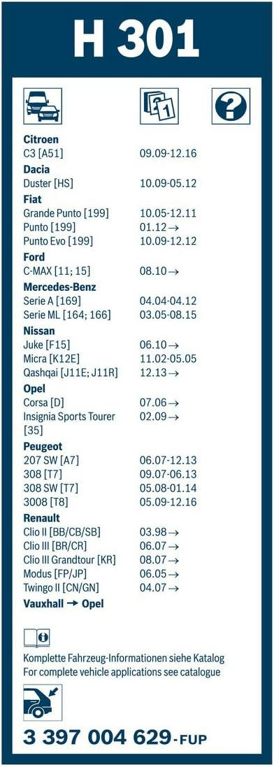 Склоочисник Bosch каркасний 300 мм (3 397 004 629) призначений для очищення заднього скла автомобіля. Модель має класичну каркасну конструкцію серії TWIN. Довжина 300 мм робить її сумісною з багатьма моделями легкових авто, які використовують короткий задній дворник.