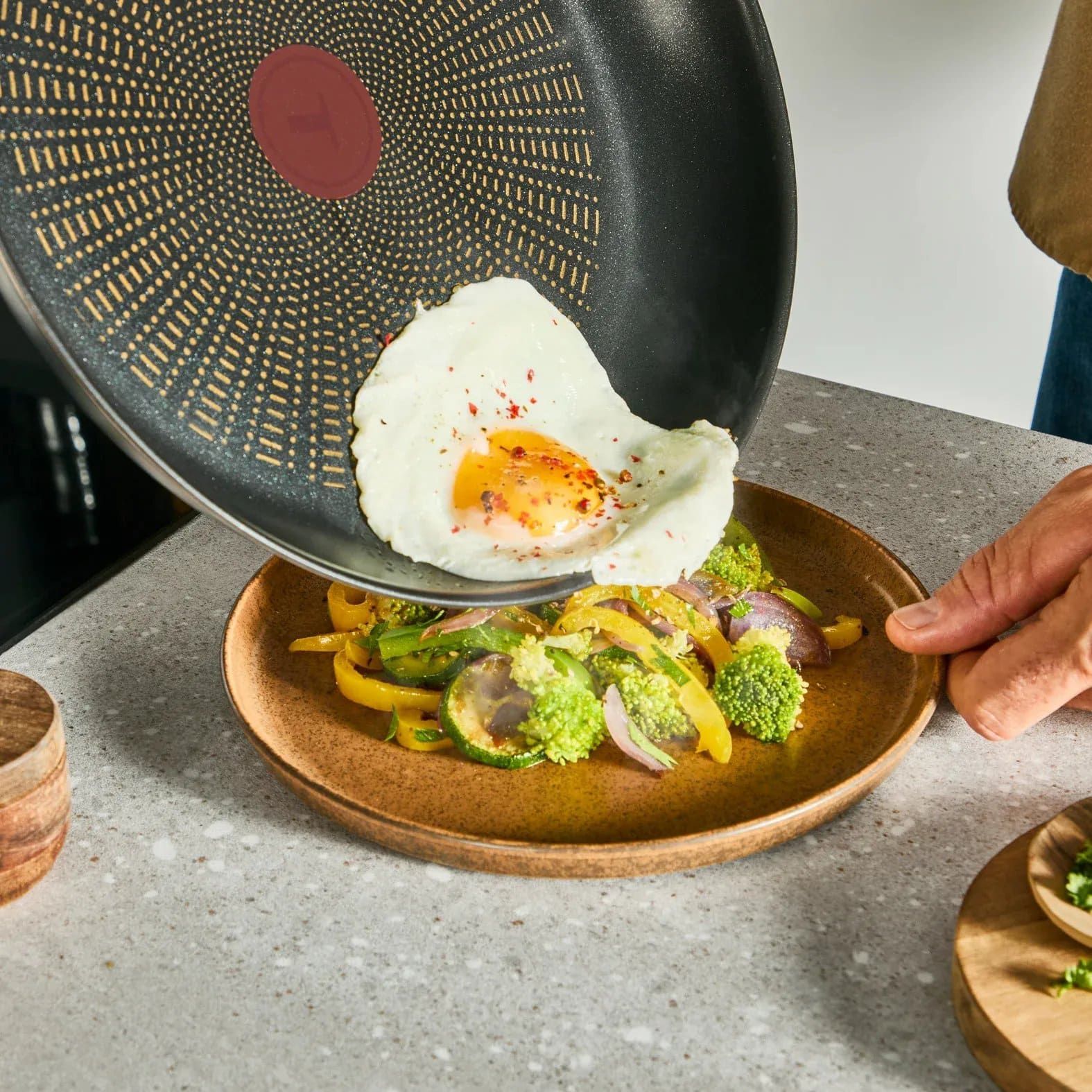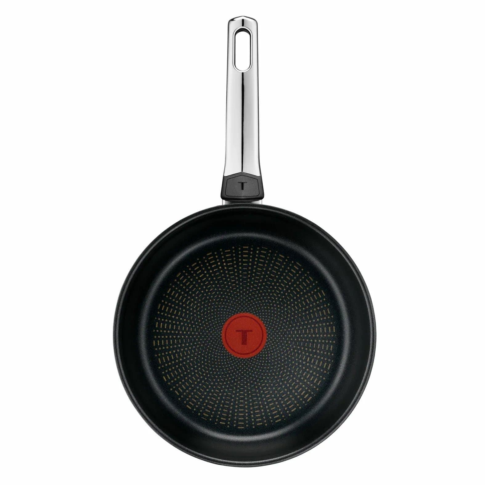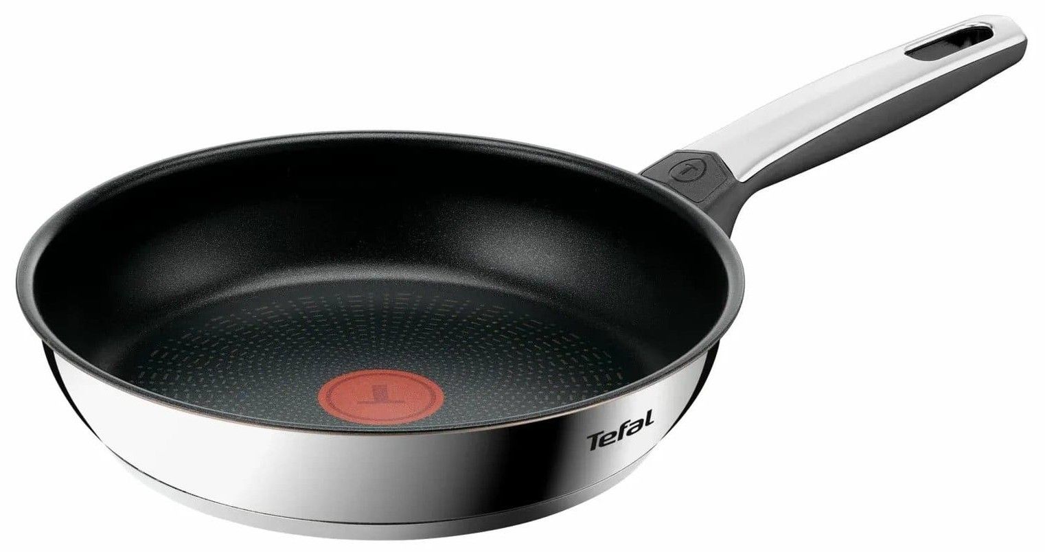 Сковорода Tefal Emotion+ діаметром 24 см виконана з нержавіючої сталі та оснащена антипригарним покриттям Extra Life X5. Конструкція забезпечує рівномірний розподіл тепла на всіх типах плит, включно з індукційними. Індикатор нагріву Thermo-Signal дозволяє визначити оптимальну температуру для початку приготування. Формат використовується для щоденного приготування страв.