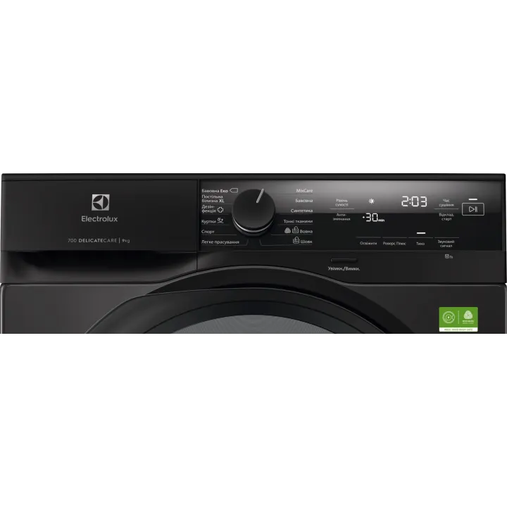 Програми:Синтетика, Бавовна Експрес, DelicateCare (шовк, вовна), MixCare (змішане завантаження), Гігієна (60 °C+)