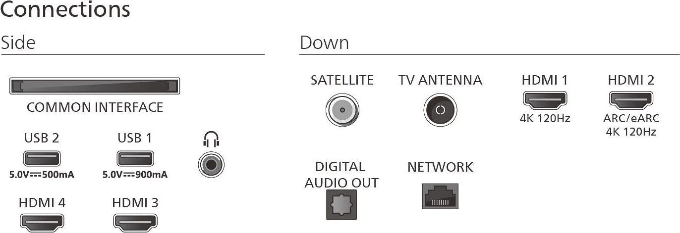 Особливості:Таймер вимкнення, Підтримка HDR10, Підтримка HLG, HGIG Mode, Dolby Vision, HDR10+, голосовий помічник, ALLM (режим автоматичної низької затримки), FreeSync Premium, екорежим, Підсвітка Ambilight, Вимикання зображення (для радіо), Сенсор світла, Apple Home, MATTER, Control4, Пульт ДК з мікрофоном