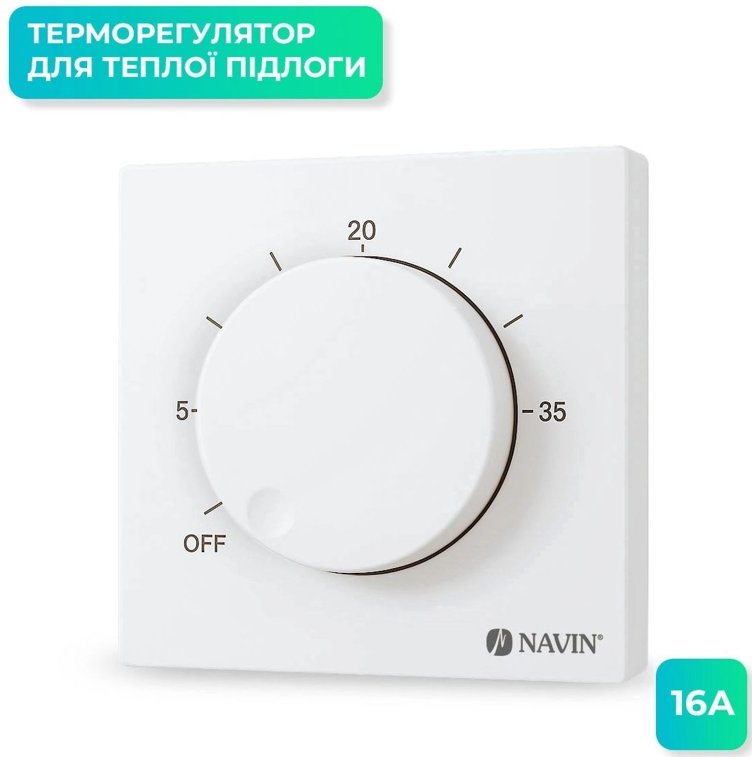 Терморегулятор Navin EH84WM-16A 5...35 °C для теплої підлоги механічний накладний дротовий датчик 16A 230В білий