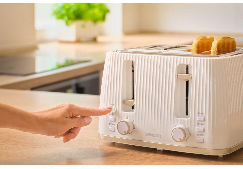 Тостер Sencor 1860Вт, підігрів, розморожування, 4 слоти, пластик, білий