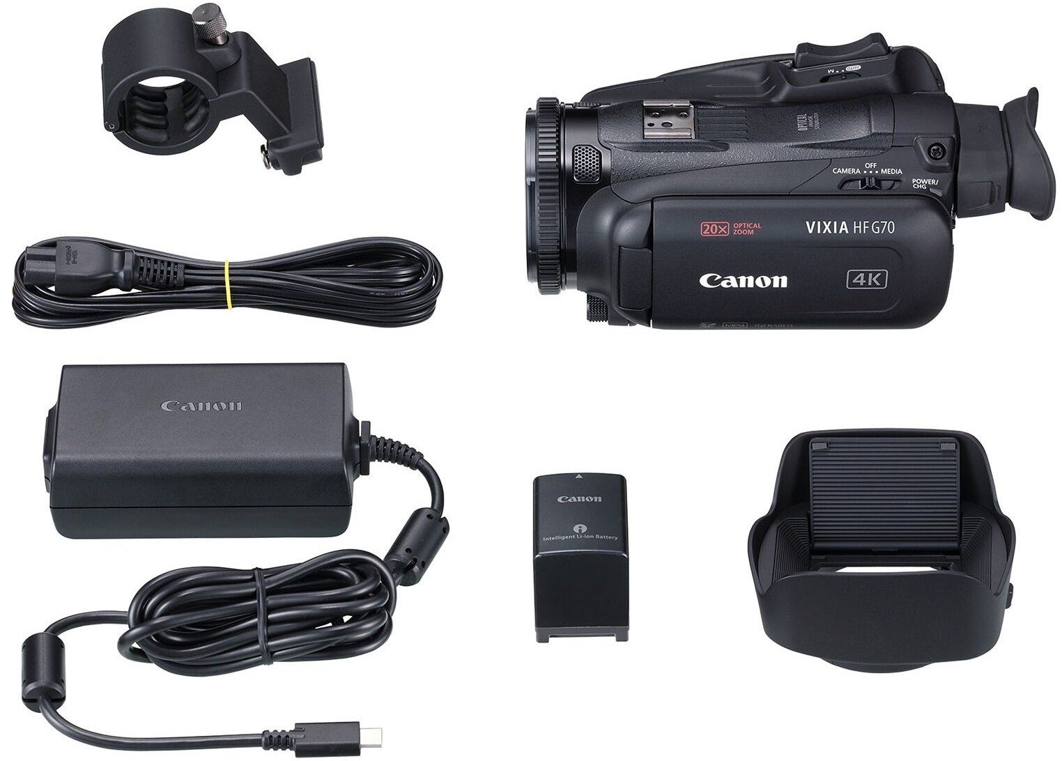Canon Legria HF G70 — компактна цифрова відеокамера з 4K UHD сенсором та процесором DIGIC DV6, призначена для створення високоякісного відео. Оснащена 20-кратним оптичним зумом, 5-осьовою стабілізацією зображення, сенсорним 3,5" дисплеєм і подвійним слотом для SD-карт. Підтримує запис у форматах 4K UHD 25p та Full HD 50p / 25p у контейнері MP4.