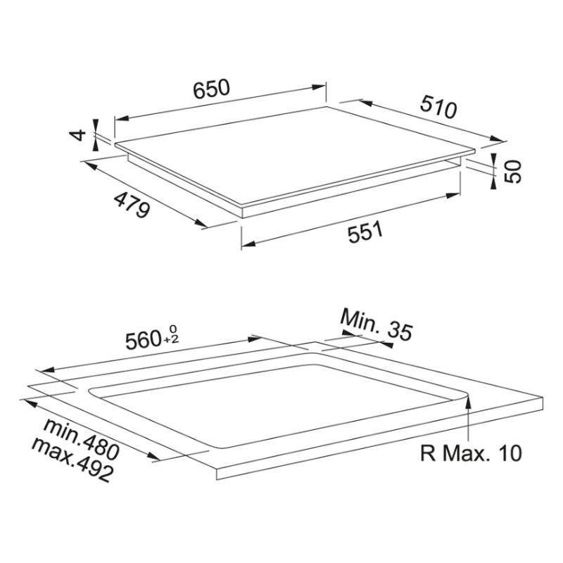 Розміри для вбудовування:560–590 × 490–510