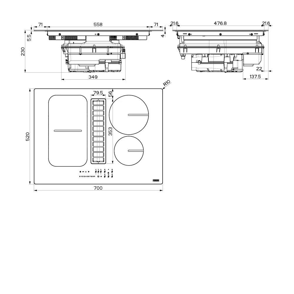 Функції:Швидкий старт, функція плавлення, Flexi Zone, автоматична робота витяжки
