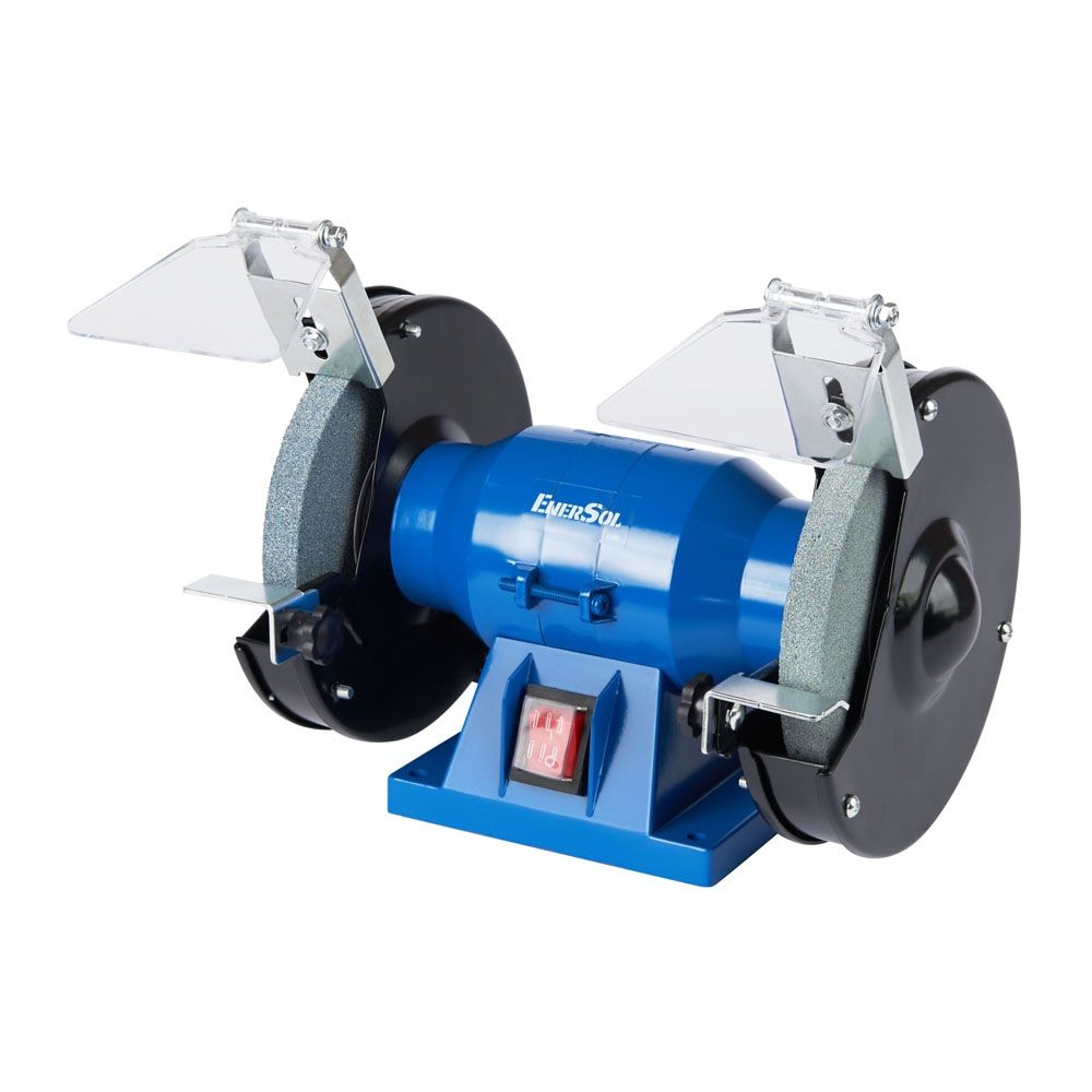 Верстат заточувальний EnerSol EBG-150E з двома абразивними кругами діаметром 150 мм і потужністю 150 Вт призначений для заточування інструменту та шліфування деталей. Швидкість обертання 2990 об/хв забезпечує стабільну роботу без надмірного нагрівання кромок. Захисні екрани, опорні площадки та гумові ніжки сприяють безпечному та комфортному використанню в обмеженому просторі.
