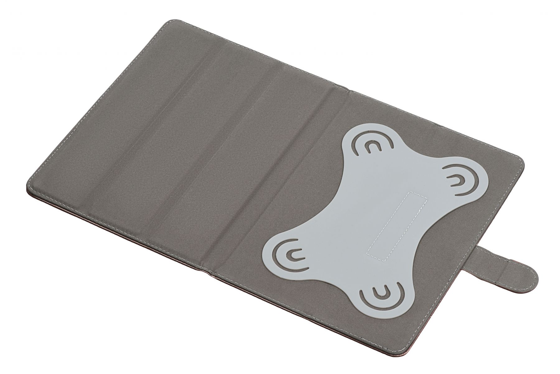 Універсальна обкладинка для планшетів та електронних книг. Зовнішня частина виконана з якісної PU шкіри, всередині м’яка підкладка з мікрофібри. У закритому положенні чохол фіксується на магнітну застібку. Для встановлення планшету передбачено спеціальне силіконове кріплення. Чохол має положення для роботи, читання і перегляду відео.