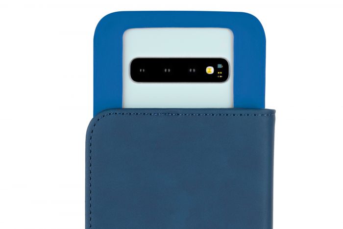 Зовні чохол виконаний з шовковистої матової PU шкіри, внутрішній шар з мікрофібри. Щільний силіконовий тримач для смартфона товщиною 2 мм стійкий до розтягування і щоденного зносу. Для зручного користування камерою є вбудований слайдер. Закритий чохол надійно фіксується магнітної застібкою. Чохол може бути використаний в режимі стенду для читання і перегляду відео.