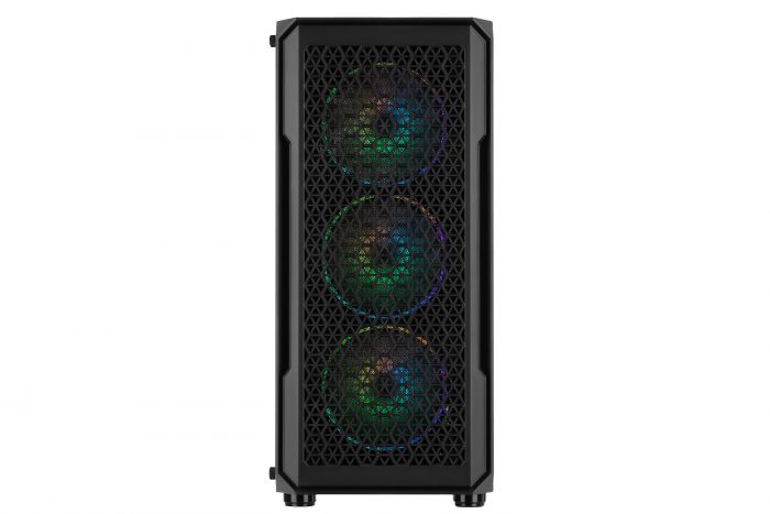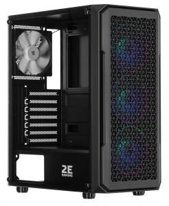 Корпус 2E GAMING HEXAGON (G338) з трьома вбудованими 120мм ARGB вентиляторами на передній панелі, плюс додатково один 120мм ARGB вентилятор на задній панелі. Модель відмінно підійде для самостійного та промислового складання, завдяки раціонально організованому внутрішньому простору і не складній конструкції.