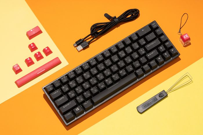 Комплектація:USB кабель, клавіатура, пулер, брелок-перемикач, змінні PBT-ковпачки