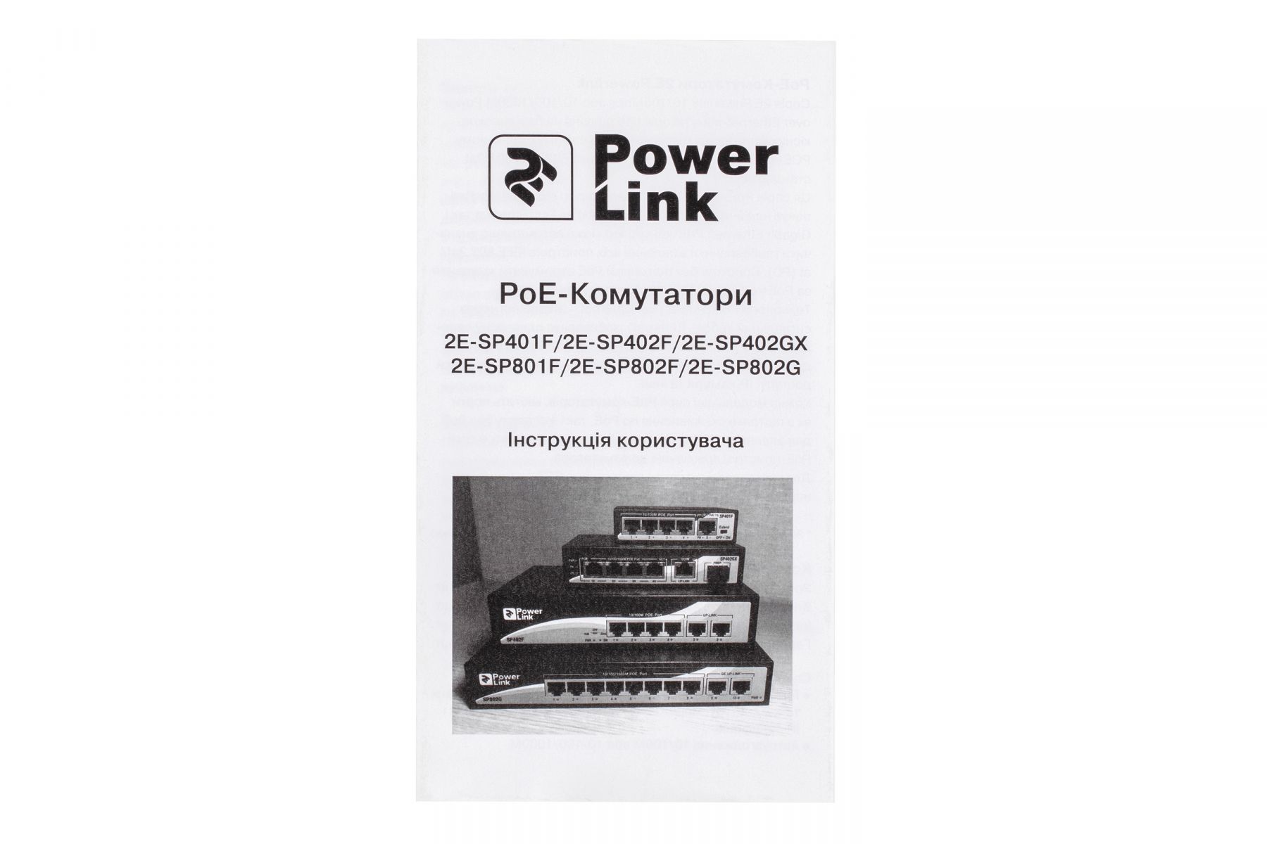 Cерія 2E Powerlink 10/100Mbps або 10/100/1000M Power over Ethernet-комутаторiв побудована на базі високоякісних мережевих мікросхем та на самому стабільному POE-чипі. Забезпечується підтримка 802.3af і 802.3at стандартів. Ця серія PоE-комутаторів в залежності від моделі забезпечує надійний зв'язок зi швидкiстю як Fast Ethernet так і Gigabit Ethernet. PoE-контролер може автоматично визначити і забезпечити живлення всіх пристроїв IEEE 802.3af/at (PD). Пристрої без підтримки PoE отримувати живлення за PoE не будуть, але зможуть передавати дані. Кожна модель цієї серії PоE-комутаторів, містить порти як з підтримкою живлення по PoE, так і 1-2 порту без PoE для аплинка, щоб подати необхідний потік даних в самі PoE-пристрої підключені до комутатора. Для можливості прийому даних через SFP-аплинк порт необхідно підключити відповідний SFP-трансивер.