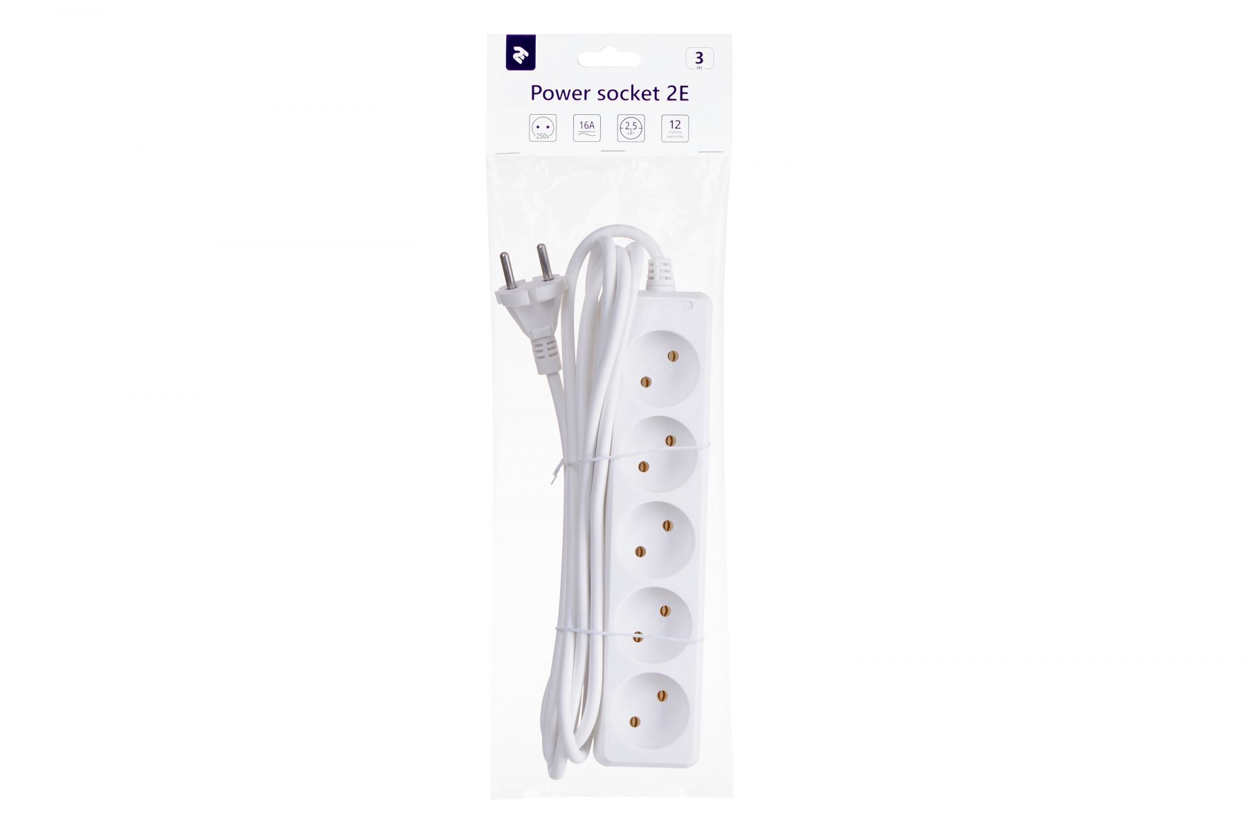 Мережевий подовжувач 2Е 5XCEE7/17, 2G*1.0мм, 3м, white