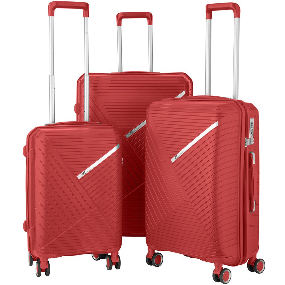 Набір пластикових валіз 2E, SIGMA,(L+M+S), 4 колеса, червоний