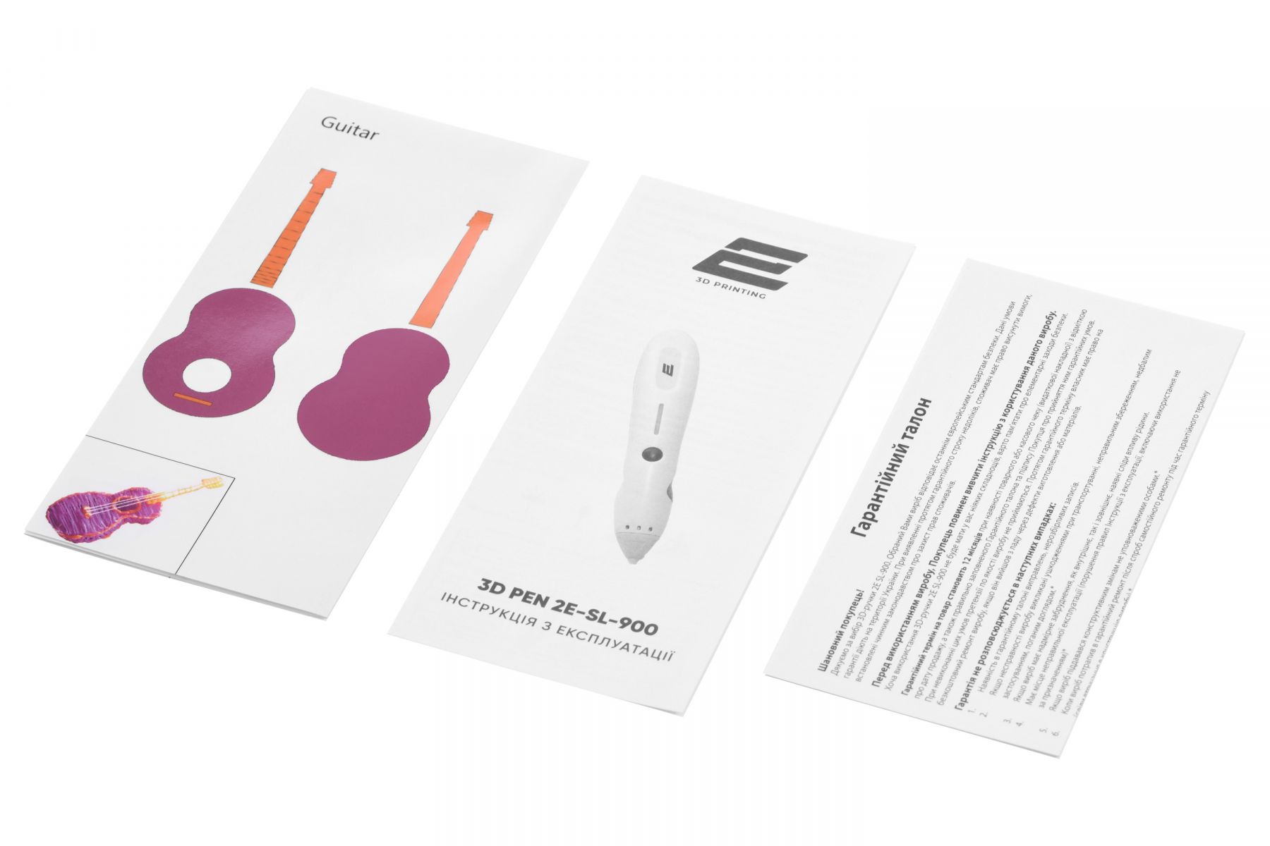 Нова ручка 2Е 3D. Розроблена з витонченим, ергономічним дизайном, що робить її природною для будь-якої руки. Важливою особливістю ручки являється те, що для роботи використовується PCL пластик (1,75 ± 0,02 мм). Цей матеріал є абсолютно безпечним, не має стороннього запаху та плавиться при дуже низьких температурах (+60-70 градусів). Ручка працює від акумулятора ємністю 500 мА·год. Виріб має 2 швидкості роботи.