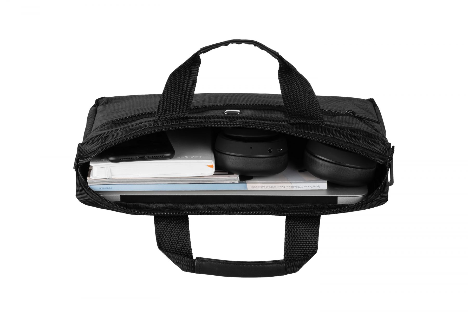 Сумка чорного кольору для повсякденного використання. Виконана з водовідштовхуючого нейлону в комбінації з матеріалом дна і стінок, що амортизує поштовхи та удари.