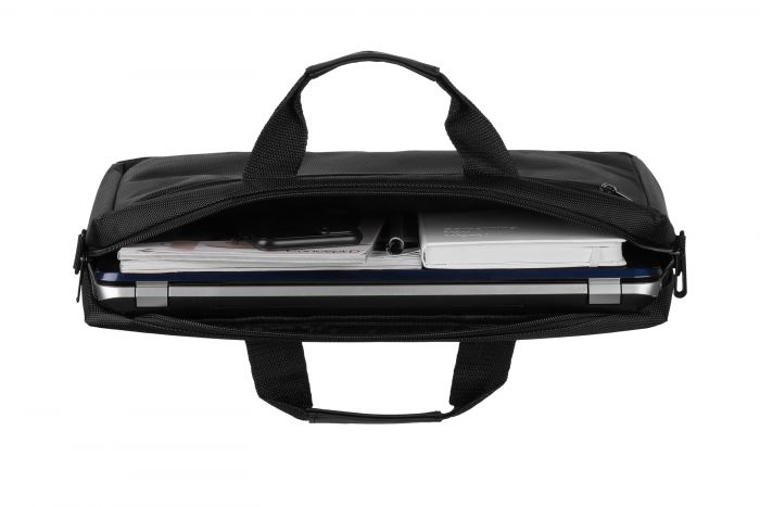 Сумка чорного кольору для повсякденного використання. Виконана з водовідштовхуючого нейлону в комбінації з матеріалом дна і стінок, що амортизує поштовхи та удари.