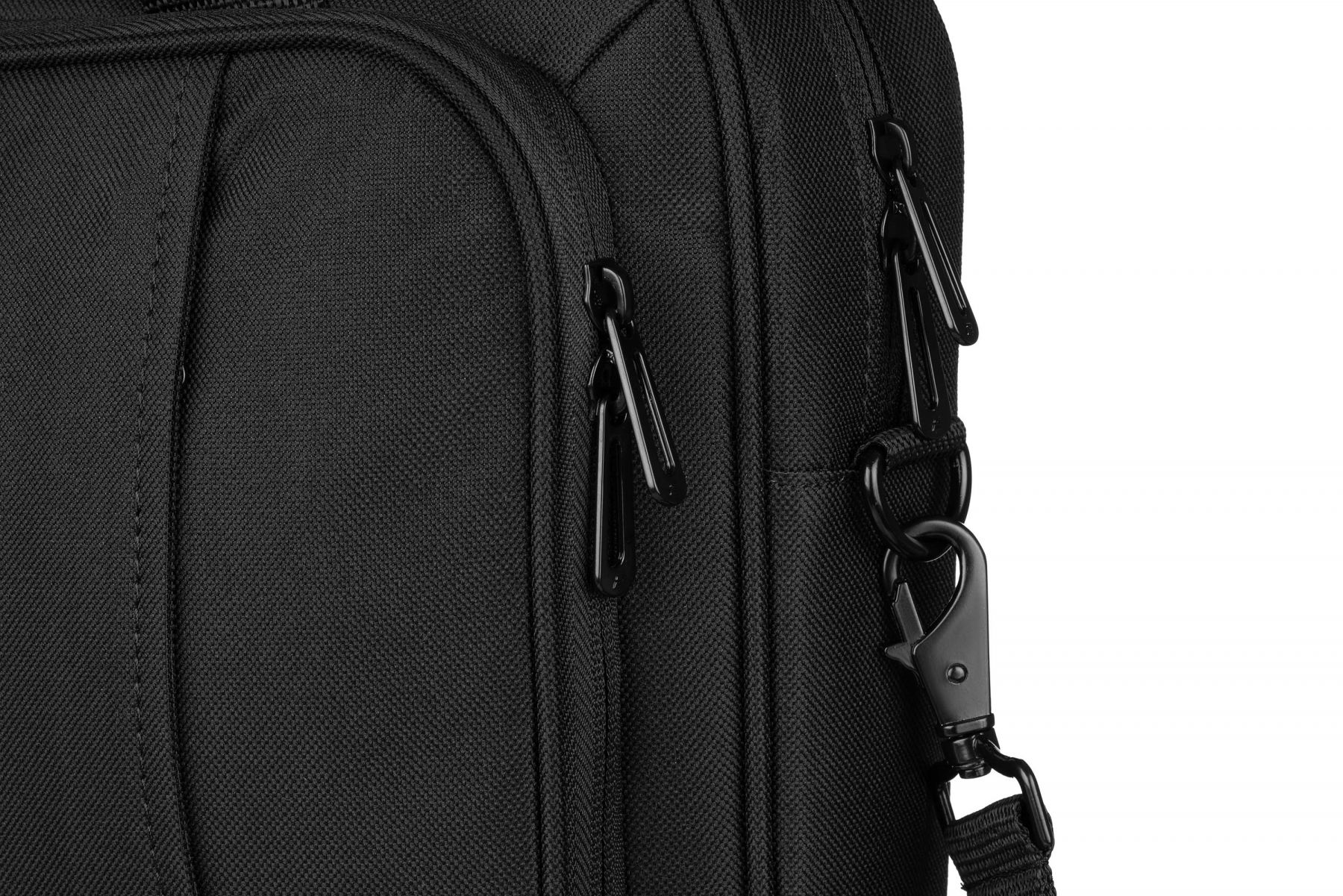 Сумка 2E Proessional 14 для ноутбуків з діагоналлю 13.3-14 дюймів. Класична сумка чорного кольору з вертикальним завантаженням ноутбука та безліччю відсіків та кишень. Водовідштовхувальний поліестер та м'який наповнювач дна та бічних стінок сумки надійно захистять ваш ноутбук.