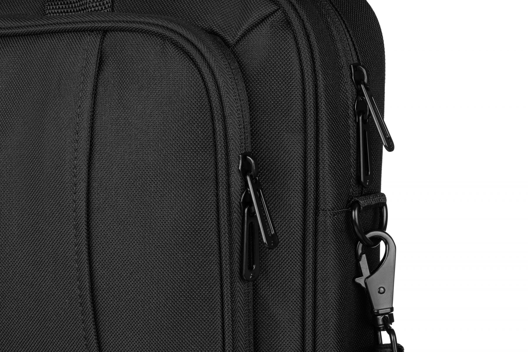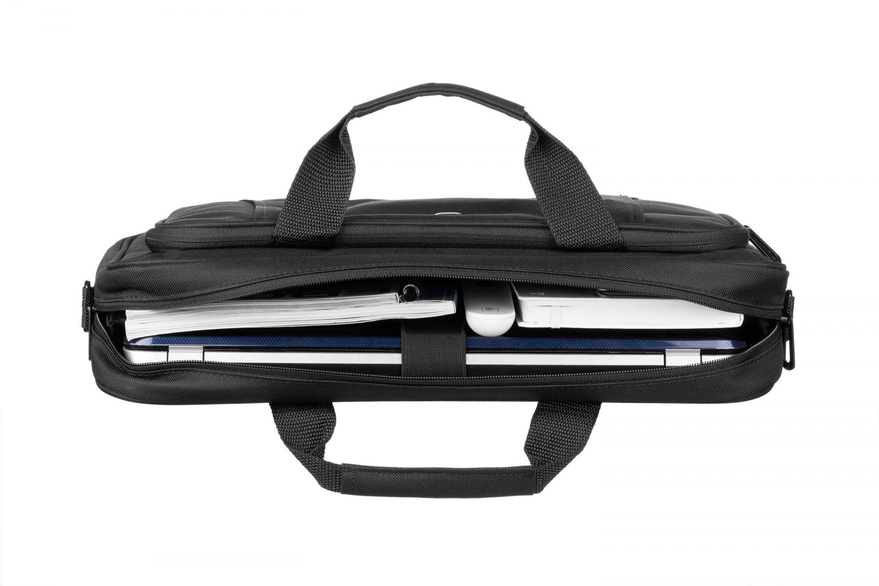 Сумка 2E Proessional 16 для ноутбуків з діагоналлю 15.6-16 дюймів. Класична сумка чорного кольору з вертикальним завантаженням ноутбука та безліччю відсіків та кишень. Водовідштовхувальний поліестер та м'який наповнювач дна та бічних стінок сумки надійно захистять ваш ноутбук.