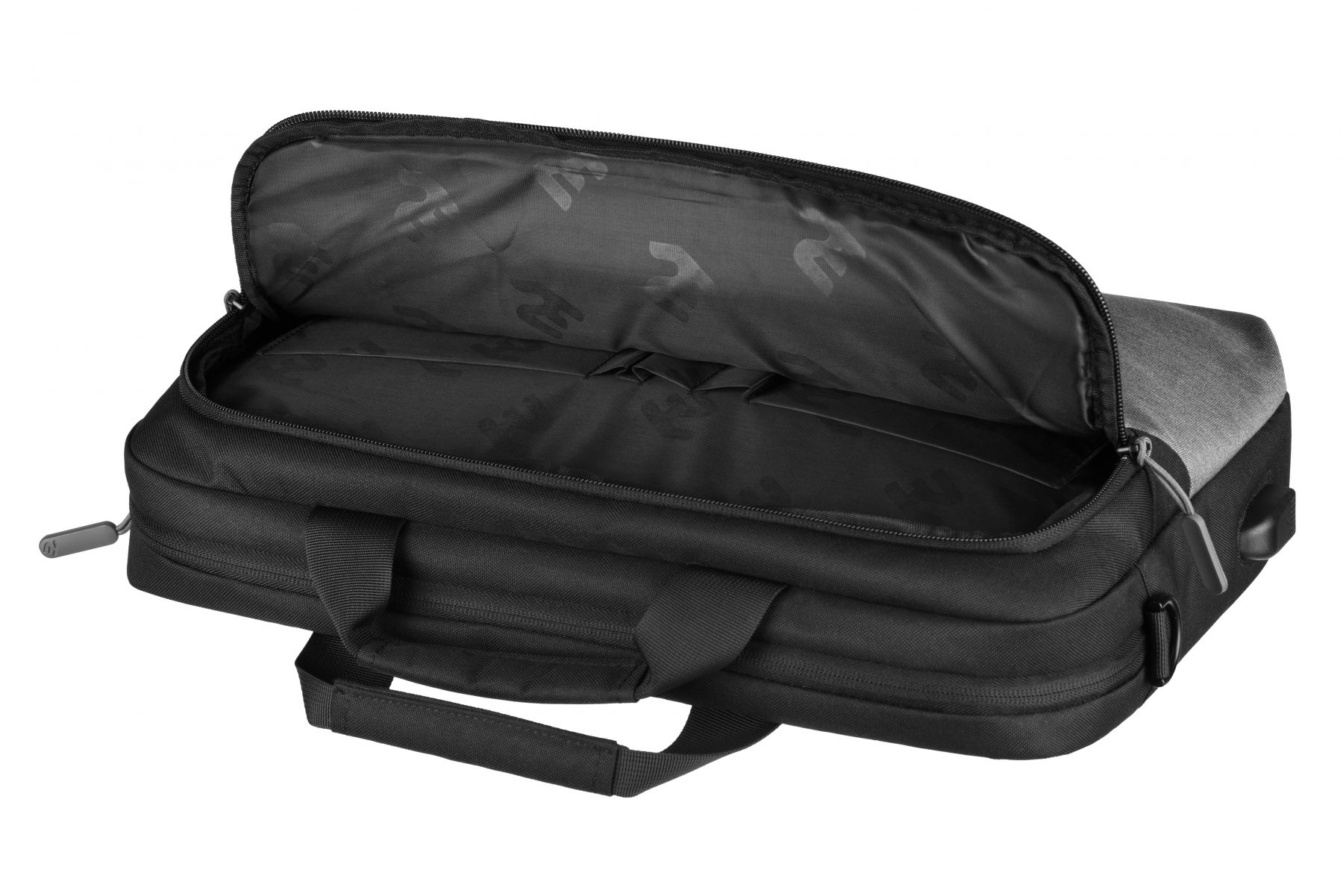 Складається з 2-х відсіків. Головне відділення з окремою кишенею з м'яких стінок для ноутбука та планшету, а також 4 кишеньки для аксесуарів. Відділ органайзер - глибока кишеня на лицьовій частині сумки, з двома внутрішніми більш компактними кишеньками та 2-ма тримачами авторучок/олівців. Сумка пошита з нейлону 2-х кольрів