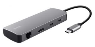Адаптер Trust Dalyx 8in1 USB-C> 1xUSB-А 3.2/USB-A 2.0/2xUSB-С/HDMI/Ehernet/SD/microSD, Алюміній, 0.15м, Сірий