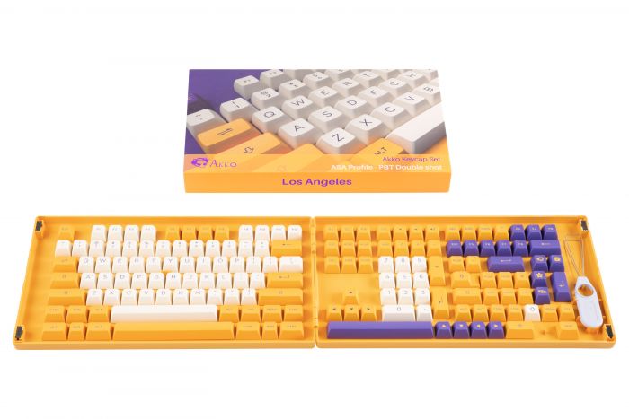 Набір клавішних ковпачків із серії "Світове турне" натхненний символічною палітрою кольорів Лос-Анджелесу, щоби передати унікальну й яскраву культуру міста за допомогою фіолетового, білого та золотого відтінків. Кейкапи мають більш низький і скульптурний профіль ковпачків ASA, забезпечуючи вільне положення пальців.