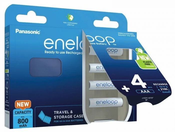 Акумуляторні батареї Panasonic Panasonic Eneloop, до складу яких входить прозорий і міцний пластиковий контейнер для 4 акумуляторів або батарейок R6/AA або R03/AAA. Це дозволяє зручно та безпечно зберігати або транспортувати акумуляторні батареї. Стандартна серія із низьким рівнем саморозряду для різних пристроїв. Рекомендовано: дрібні побутові прилади (краса та здоров'я), цифрові фотокамери, приставки та іграшки, ліхтарі, техніка для щоденного використання