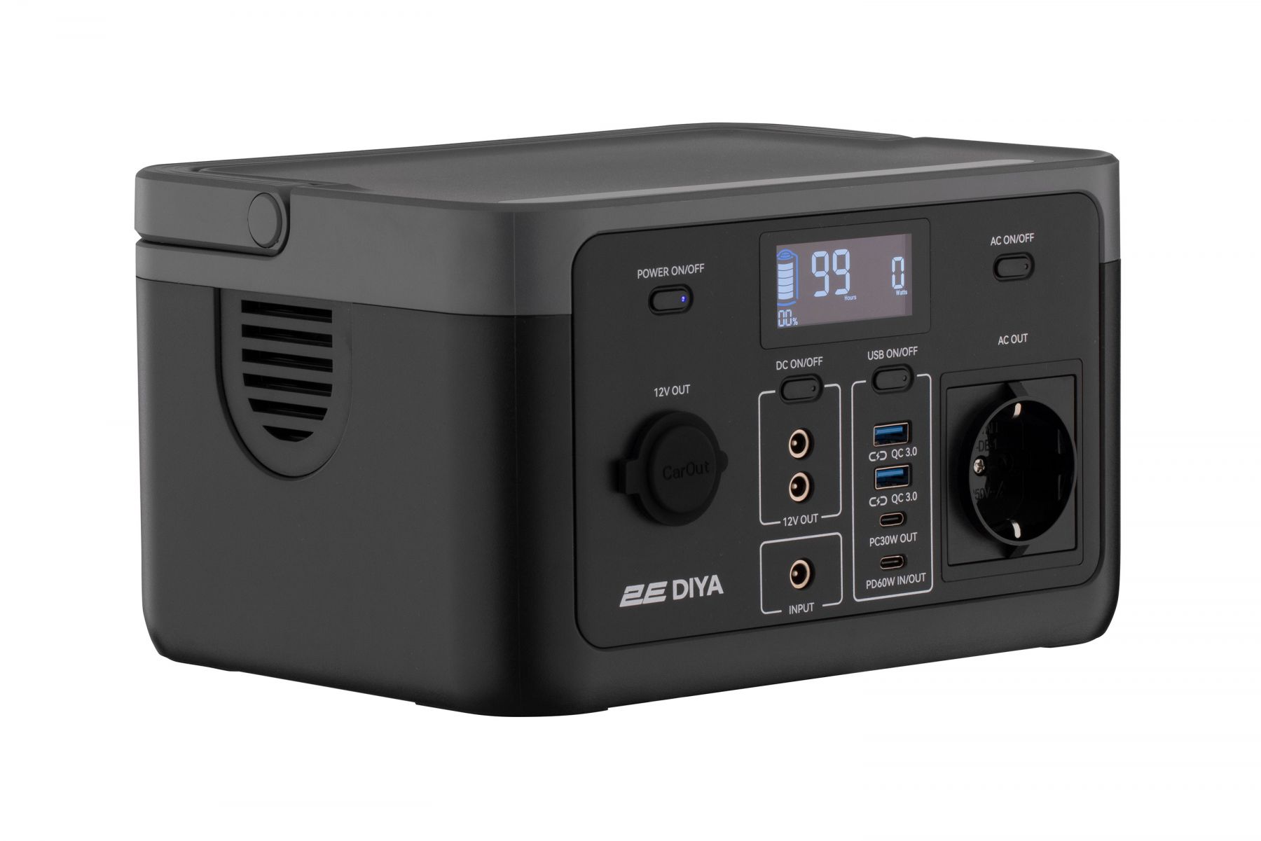 Портативна зарядна станція нового покоління 2Е DIYA надлегка та компактна з номінальною потужністю інвертора та чистою синусоїдою в 300 Вт і ємністю акумулятора LiFePO4 в 320 Вт/год володіє інноваційними функціями і технологіями, що робить її найкращим джерелом резервного або альтернативного живлення.