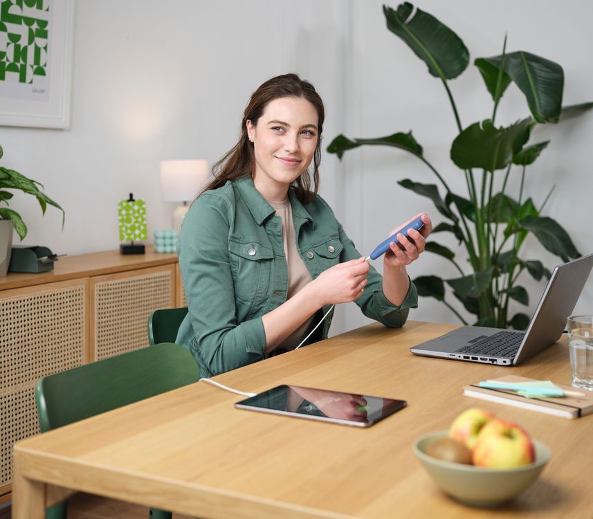 Акумулятор PRIMO ємністю 10 0000 мАг ECO створений з урахуванням часу автономної роботи та турботи про навколишнє середовище, виготовлений з перероблених матеріалів та забезпечує до 46 додаткових годин роботи без підзарядки.