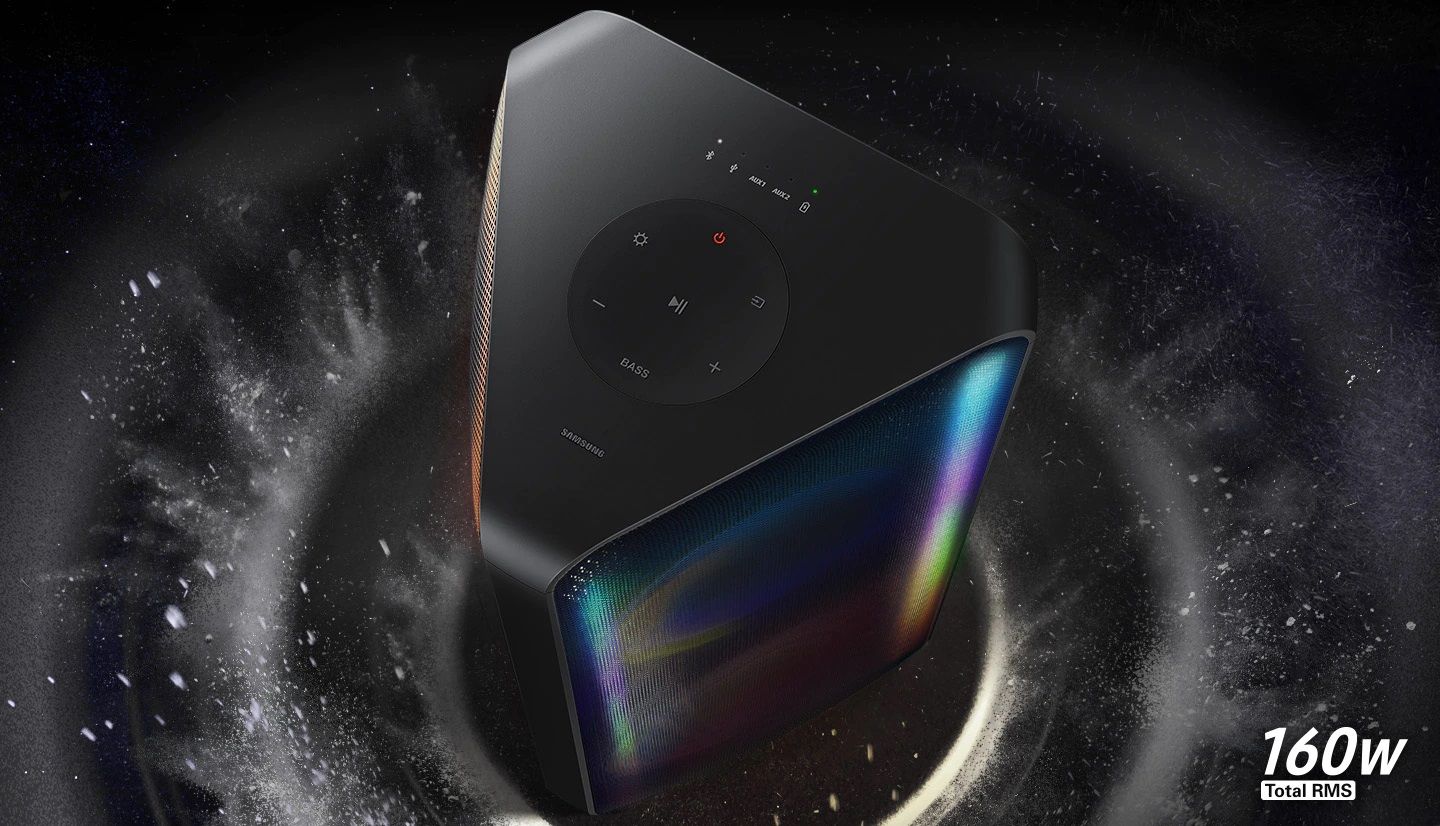 Акустична система Samsung MX-ST50B. Оживіть вечірку завдяки двонаправленому звуку та високій вихідній потужності 240 Вт. Порадуйте своїх друзів потужним звуком двонаправленої акустичної системи Samsung Sound Tower. Ця система заповнить весь простір кімнати звуком, здатним створити атмосферу нічного клубу у вас вдома.Розкачайте свою вечірку за допомогою потужного звуку. Натисніть кнопку Bass Booster і підірвіть вечірку потужним звуком. Аудіосистема потужністю 240 Вт – це справжній бустер для вашої вечірки.
