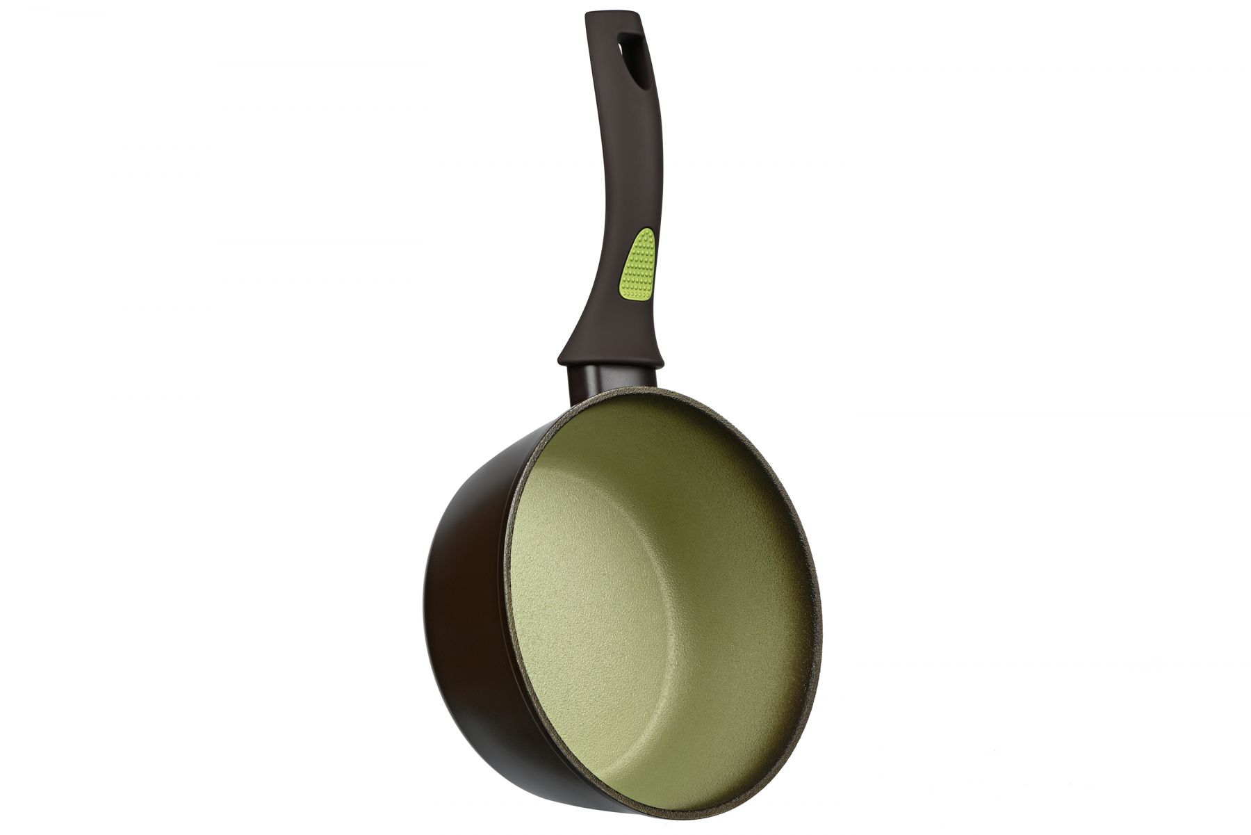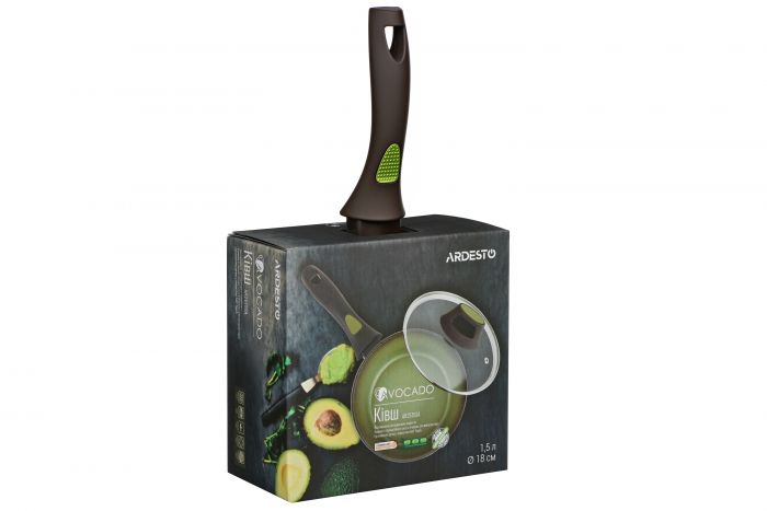 Ківш серії Avocado виготовлено з кованого алюмінію в коричневому кольорі з зеленими внутрішніми стінками. У серії посуду Avocado використовується антипригарне покриття Greblon C2. Ручки виготовлено з бакеліта з Soft-touch покриттям. Ківш поставляється з термостійкою скляною кришкою з отвором для пари та сумісний з усіма видами плит, включаючи індукційну.