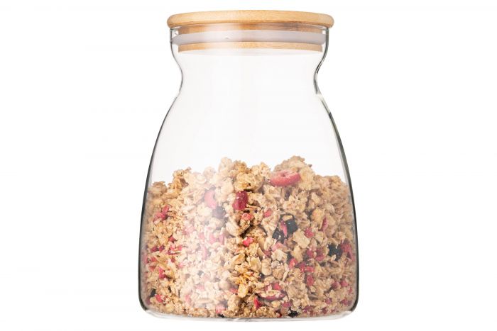 Скляна банка серії Fresh Hourglass для зберігання продуктів з кришкою з бамбука.
