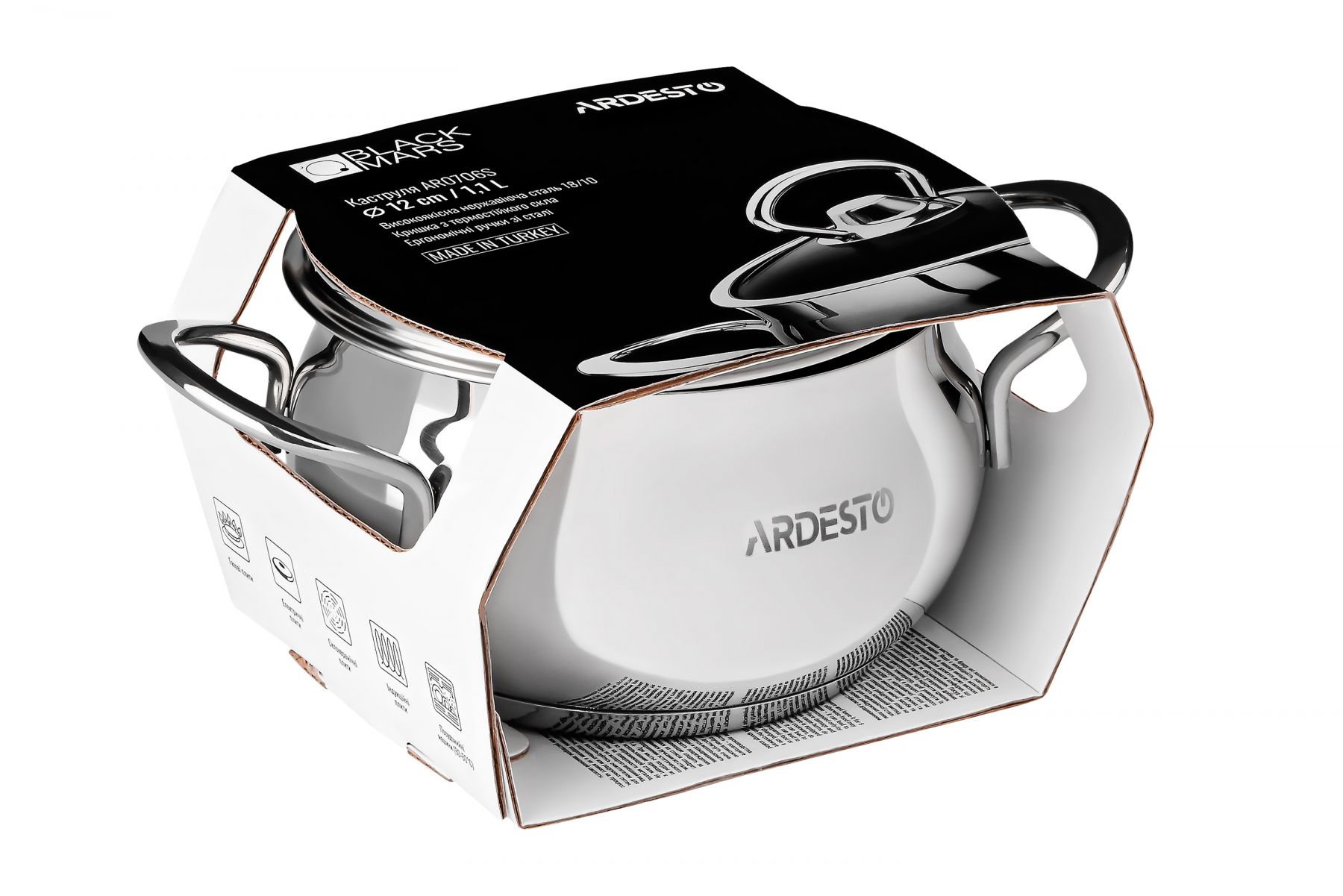 Каструля Ardesto BLACK MARS, скляна кришка, 1.1 л, нержавіюча сталь