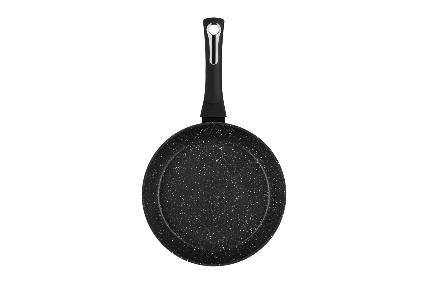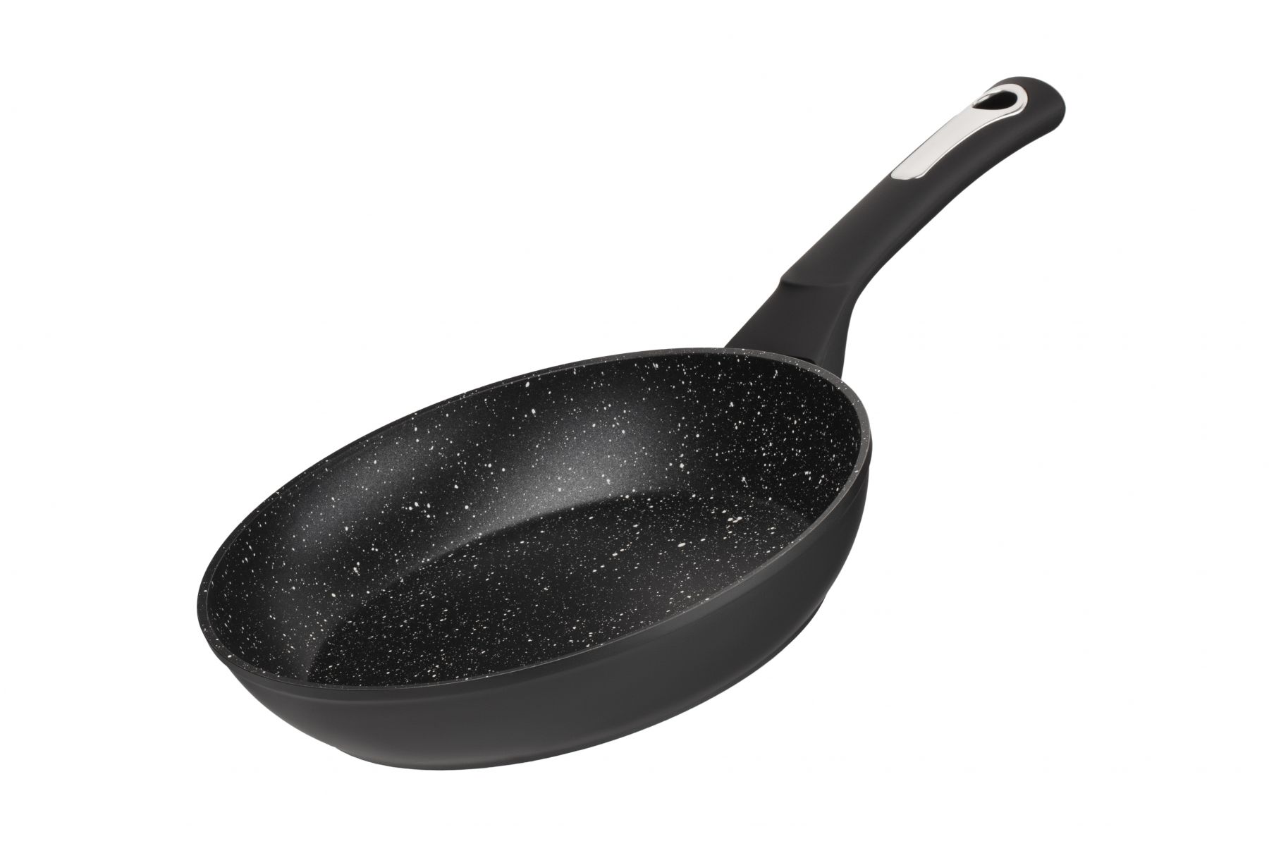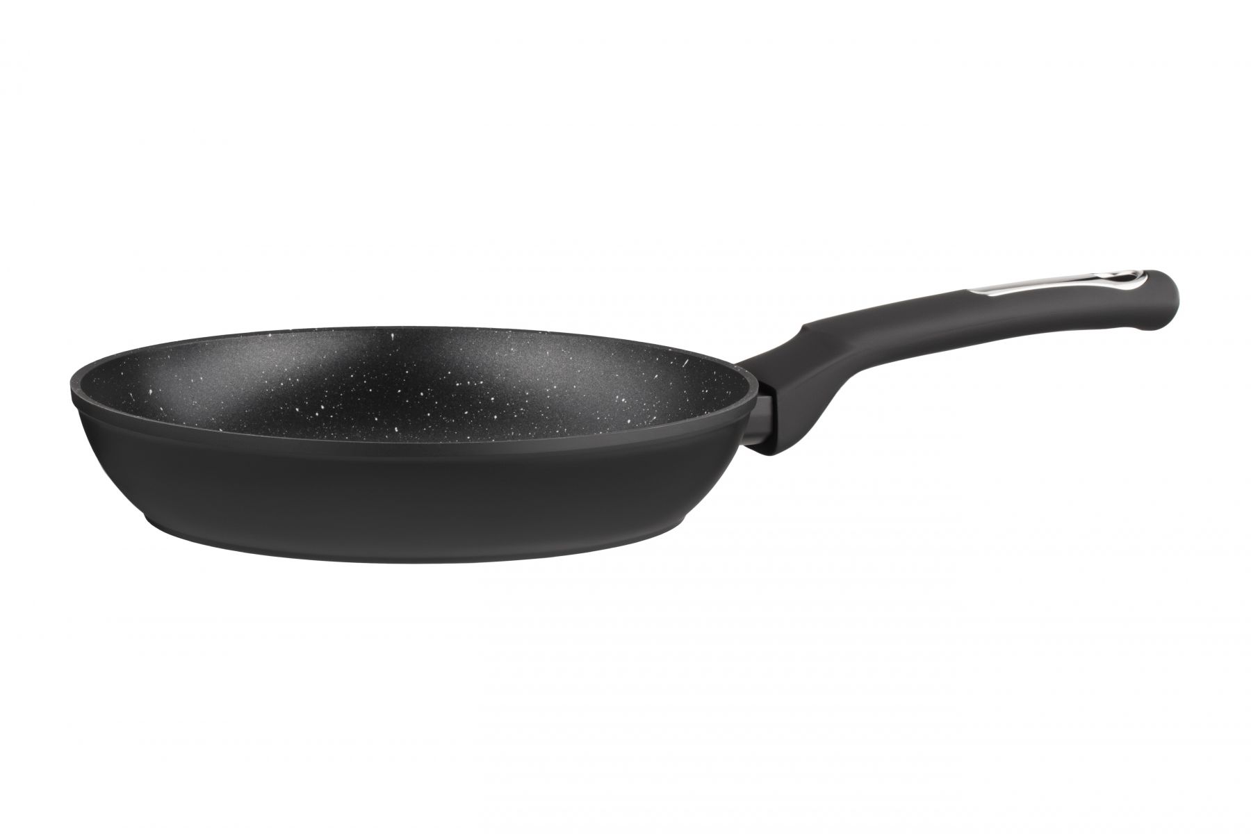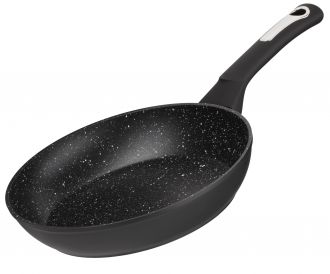 Чорну сковороду діаметром 28 см виготовлено з кованого алюмінію та оснащено мармуровим покриттям, що має високі антипригарні показники і є стійким до механічних пошкоджень. Висота стінок сковороди – 50 мм, товщина – 2,6/4 мм, товщина дна – 2,6 мм. Ручку вкрито покриттям Soft-touch. Сковороду можна використовувати на газових, електричних, склокерамічних, індукційних та галогенних плитах і не можна мити в посудомийній машині.