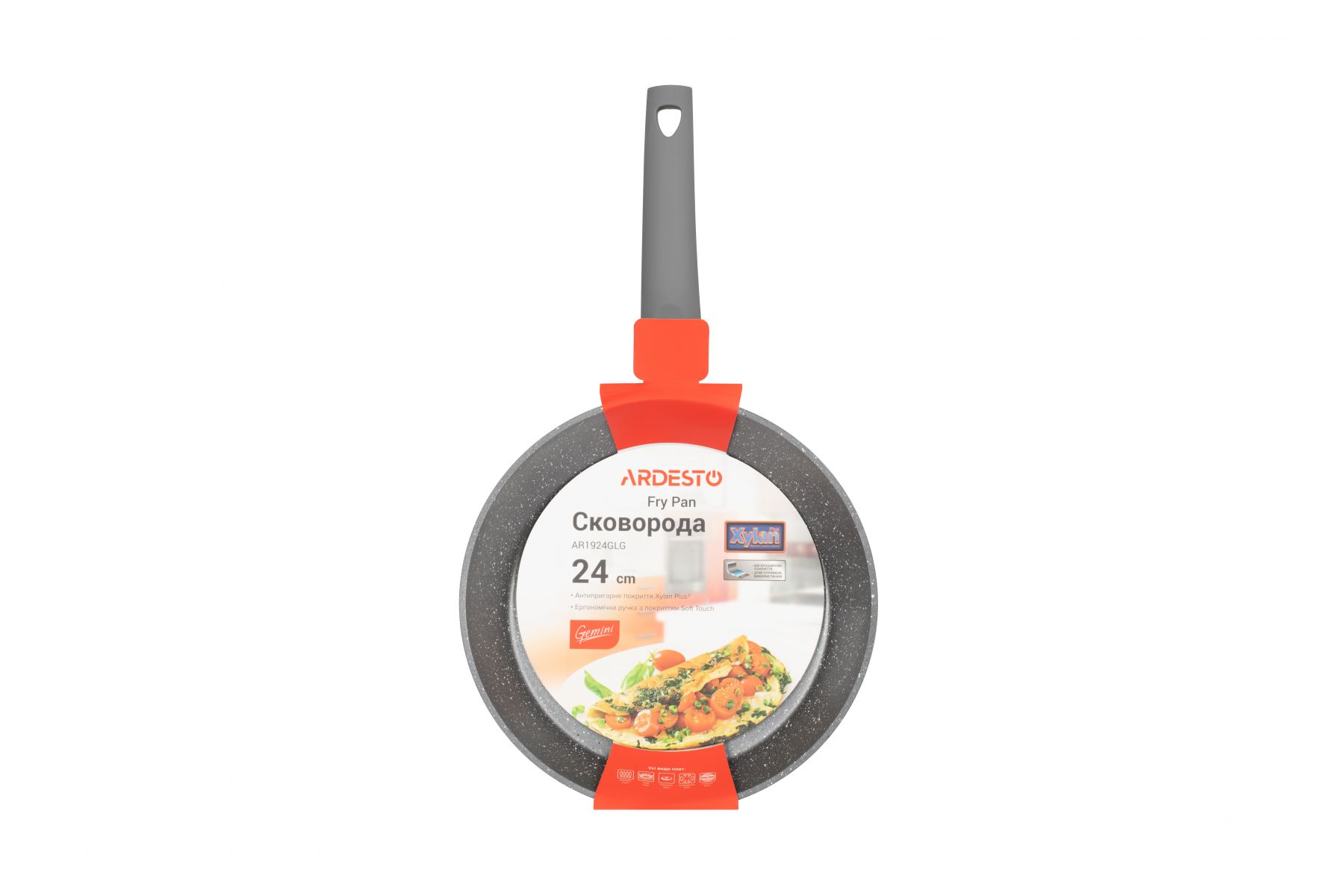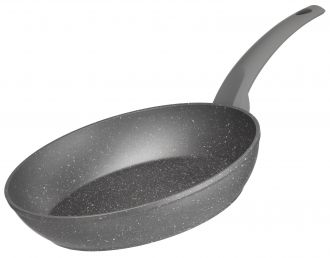 Сіру сковороду діаметром 24 см виготовлено з кованого алюмінію та оснащено покриттям Xylan Plus, що має високі антипригарні показники і є стійким до механічних пошкоджень. Висота стінок сковороди – 45 мм, товщина – 2,6/4 мм, товщина дна – 2,6 мм. Ручку вкрито покриттям Soft-touch. Сковороду можна використовувати на газових, електричних, склокерамічних, індукційних та галогенних плитах і не можна мити в посудомийній машині.