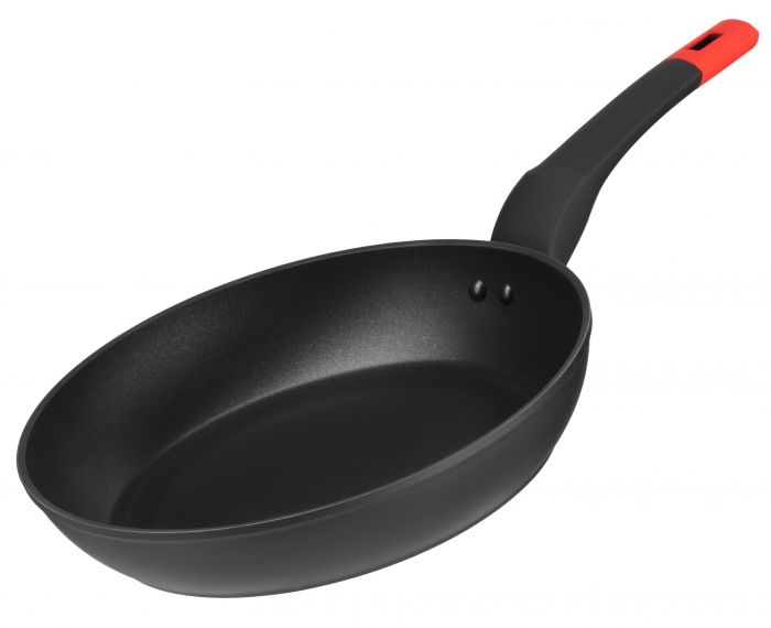 Чорну сковороду діаметром 24 см виготовлено з кованого алюмінію та оснащено покриттям Xylan Plus, що має високі антипригарні показники, є стійким до механічних пошкоджень. Висота стінок сковороди – 45 мм, товщина – 2,6/4 мм, товщина дна – 2,6 мм. Ручку вкрито покриттям Soft-touch. Сковороду можна використовувати на газових, електричних, склокерамічних, індукційних та галогенних плитах і не можна мити в посудомийній машині.