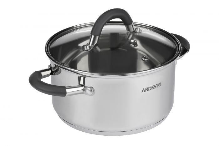 Каструля Ardesto Gemini Salerno, скляна кришка, 1.2 л, сірі ручки з силіконом, нержавіюча сталь