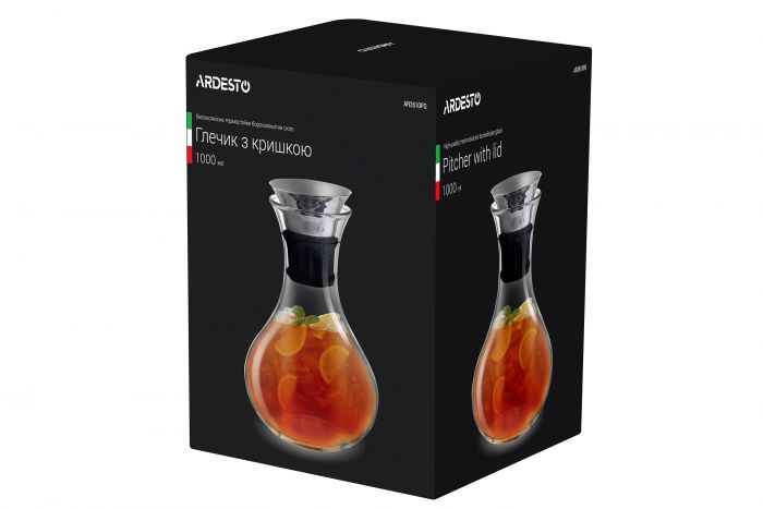 Глечик Ardesto з кришкою, 1000 мл, боросилікатне скло, нержавіюча сталь