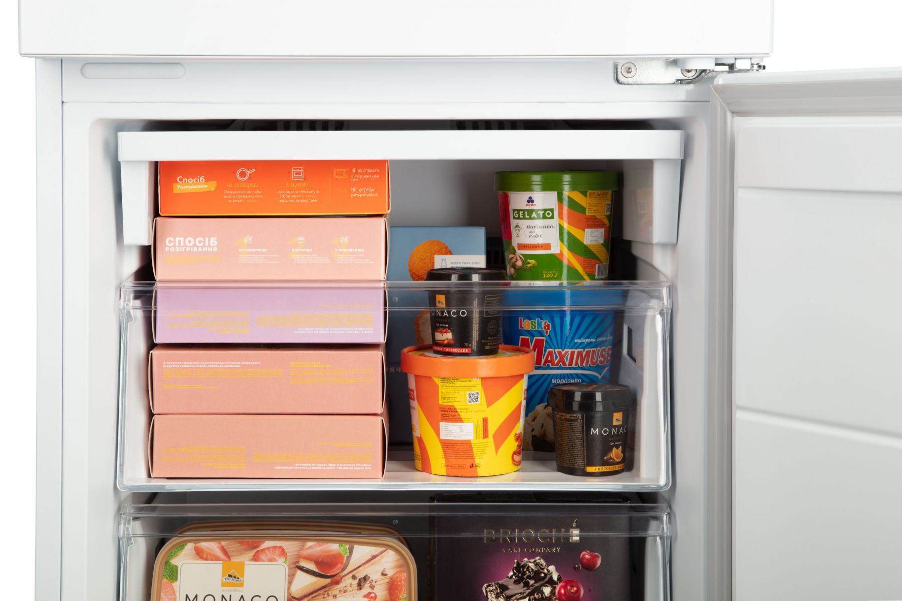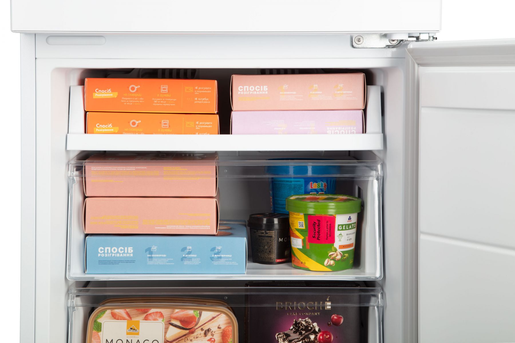 Холодильник білого кольору заввишки 180 см із великою нижньою морозильною камерою. Призначений для використання в побутових і аналогічних побутовим умовах. Об’єм холодильної камери – 172 л, а морозильної – 87 л, клас енергозбереження – А+.