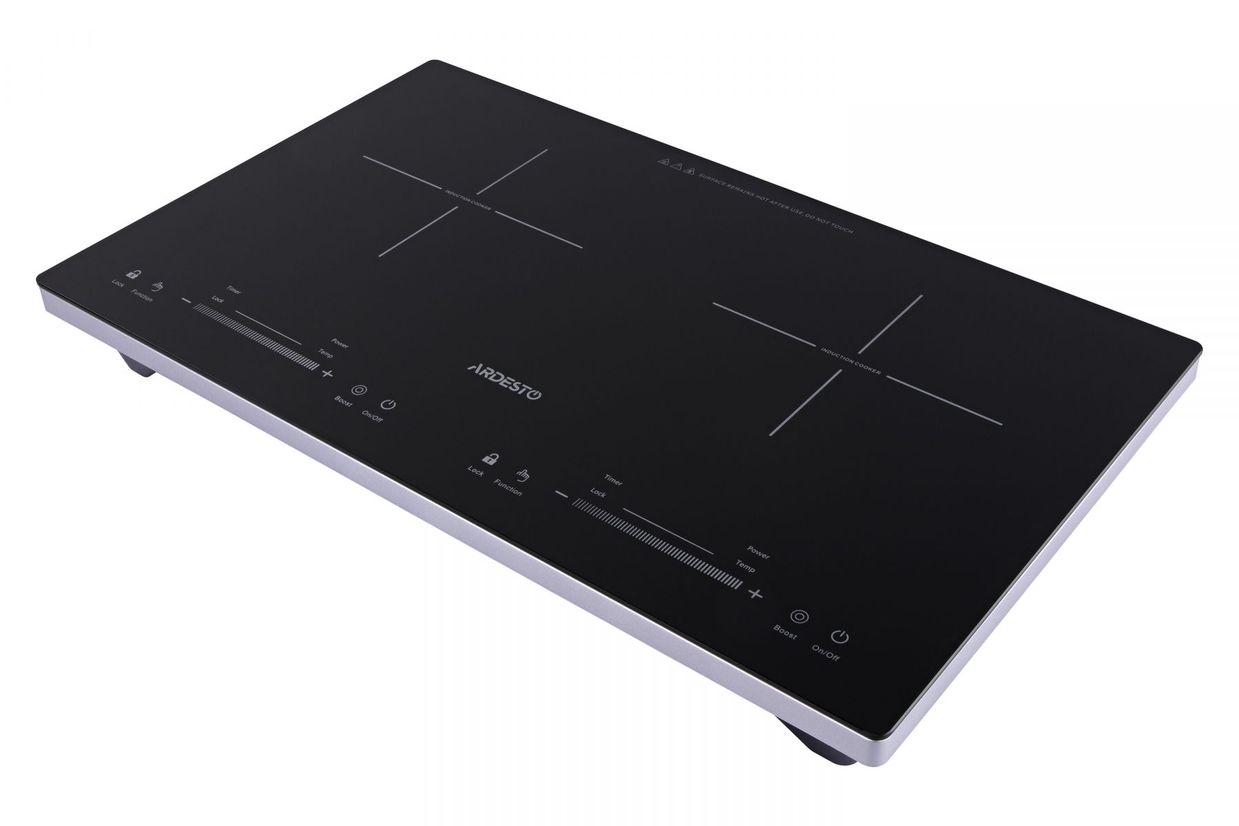 Індукційна електрична варильна поверхня на дві конфорки з загальною потужністю 3100 Вт, сенсорним управлінням, регулюванням температури та потужності, режимом Boost, а також таймером приготування, блокуванням панелі та захистом від перегріву і перепадів напруги.